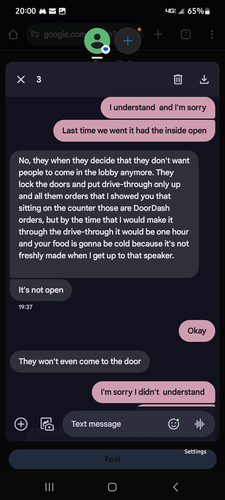 Read moreThe absolute worst Taco Bell I’ve ever had experience with. I ordered online to pick up in the store because i’m aware of how ridiculously long this Taco Bell’s drive thru is. I showed up at 4:00pm and the lobby was already closed with a sign that said drive thru only as workers were just standing there in the lobby. So I went in the drive thru to get the food I already paid for. I waited over 20 minutes just to get to the place to order and I told her my name. They said they didn’t have any orders for that… I gave them the 4 digit code I had and they found it but the girl said “it says it’s for in store pick up, not the drive thru.” I told her their doors are locked so how was I supposed to get my food. There was no answer and she said to pull around to the windows. I waited another 25 minutes to get to the window even with people leaving the line in front of me. They had my food ready sitting there since I ordered ahead, and was sitting out so long it was very soggy. There was no communication what was going on and they just handed me my food and said nothing as I left. I work in retail, I understand things can get flustered when a rush comes in but there is a complete lack of care...