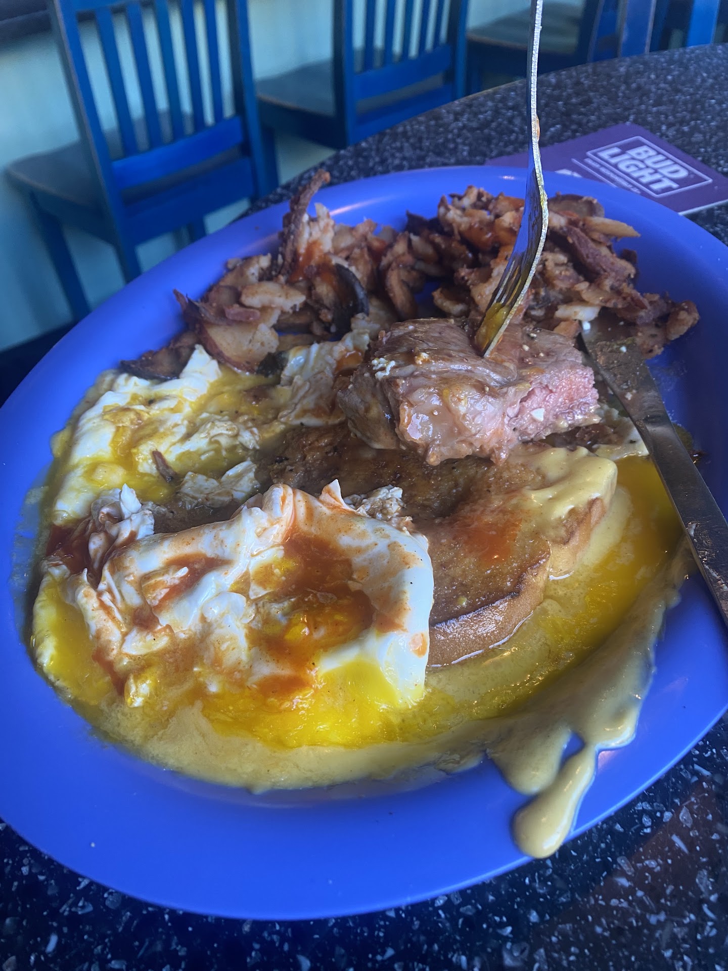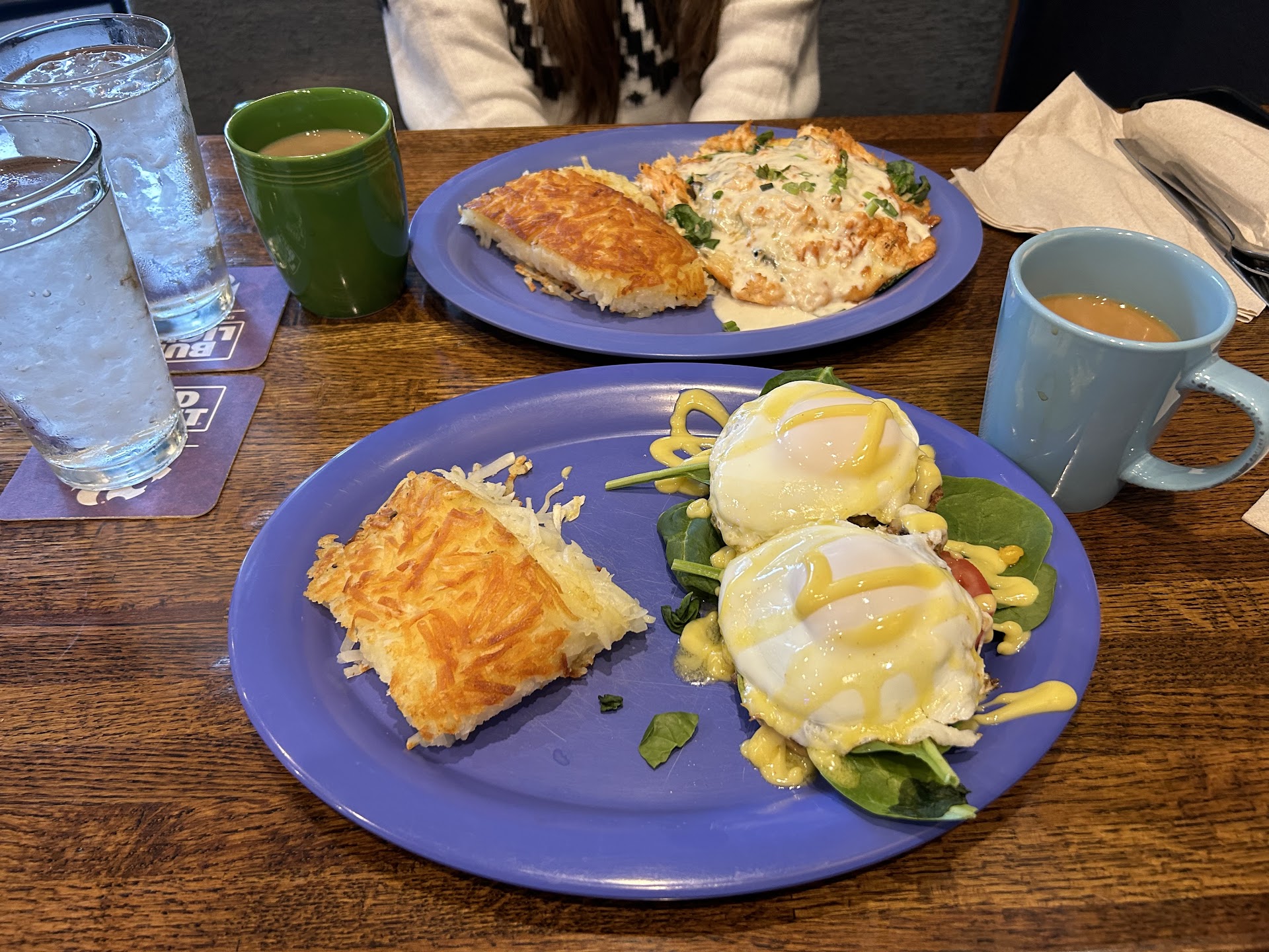 Updated review 11/11/23 Our recent visit was honestly so bad in so many ways that I felt compelled to update my review. On our most recent visit we were so incredibly disappointed with both the service from our waitress and the quality of food thay we ordered. The waitress was so incredibly apathetic and had the worst general demeanor that we were immediately put off. And I'm disappointed because I brought a friend with me who had never been before and spent the 45min wait talking up how great it was. When ordering our food we didn't ask for any crazy changes, just that our hash be cooked more crispy. We were told that due to how busy it was, that wouldn't likely happen. But by the time we actually got seated and ordered, there was no longer near the patrons that had been in there. No standing wait, and empty tables at this point. I wouldn't have been too generally disappointed except that they clearly cooked their hashbrowns in a giant square pan and just cut out squares for each order from that pan. The problem is that the hash was still cold in the middle and it's extremely mushy/soggy. At worst, it would have taken 45 seconds to throw that square on the griddle, smash it down and crisp it up. I ate less than 1/3rd of my order and took the rest home for the pets.