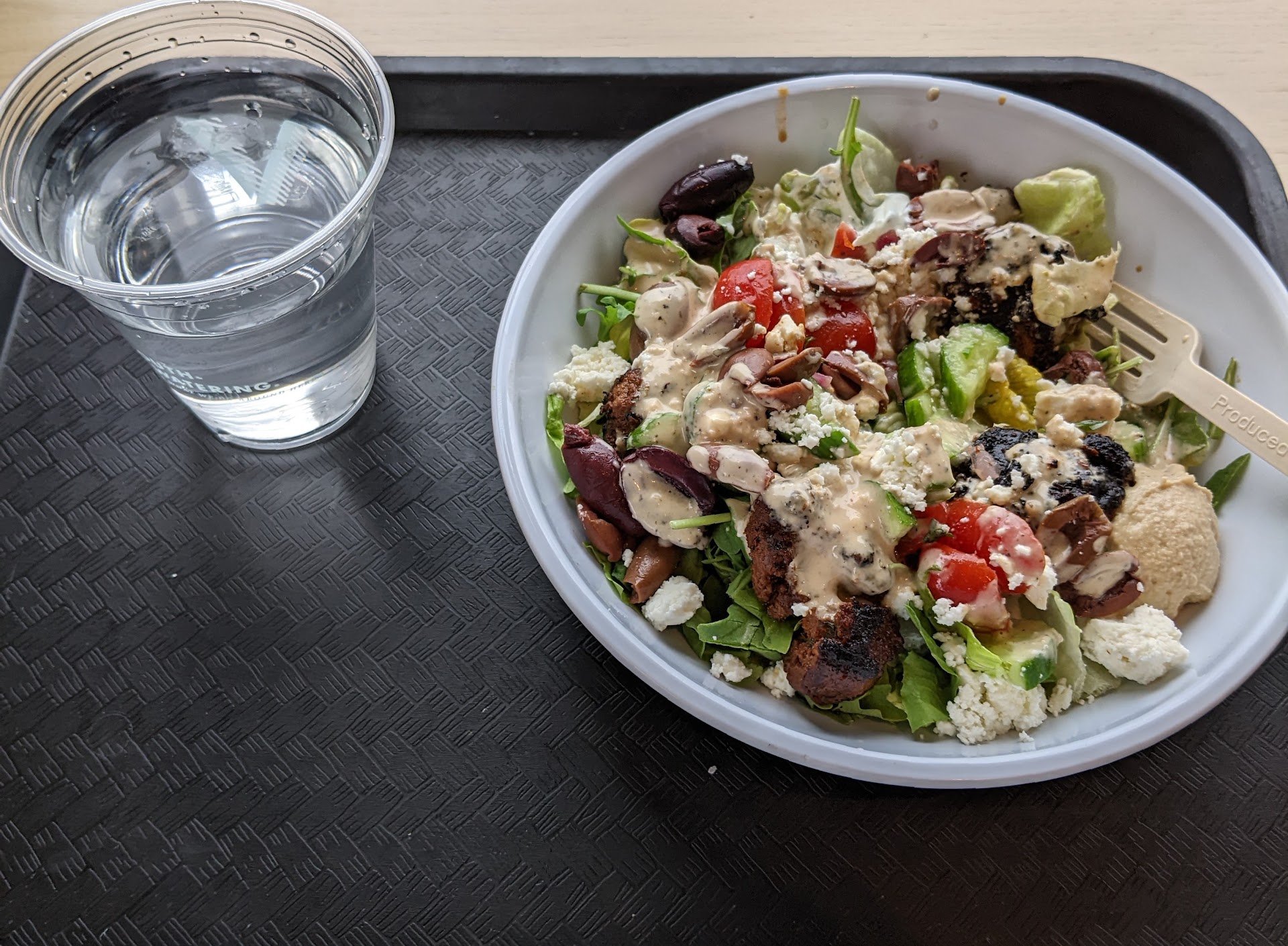 Food: I got an arugula rice bowl with lamb meatballs with hot harrisa chips. Portions decently okay, Only got 4 meatballs so i paid extra for 3 more. The quality & flavor is unreal tho, The lamb was hitting, The garlic dressing was slapping, The greens were fresh & crunchy. The sides/ toppings are different & interesting. The only thing was the hot harissa chips. They were lukewarm & crunchy but spicy? I was under the impression for them to be âmade fresh to orderâ not left under a heating lamp stale & soggy. Not sure if they are meant to be lukewarm but i got handed another batch âfresh off the fryerâ and they were still lukewarm.