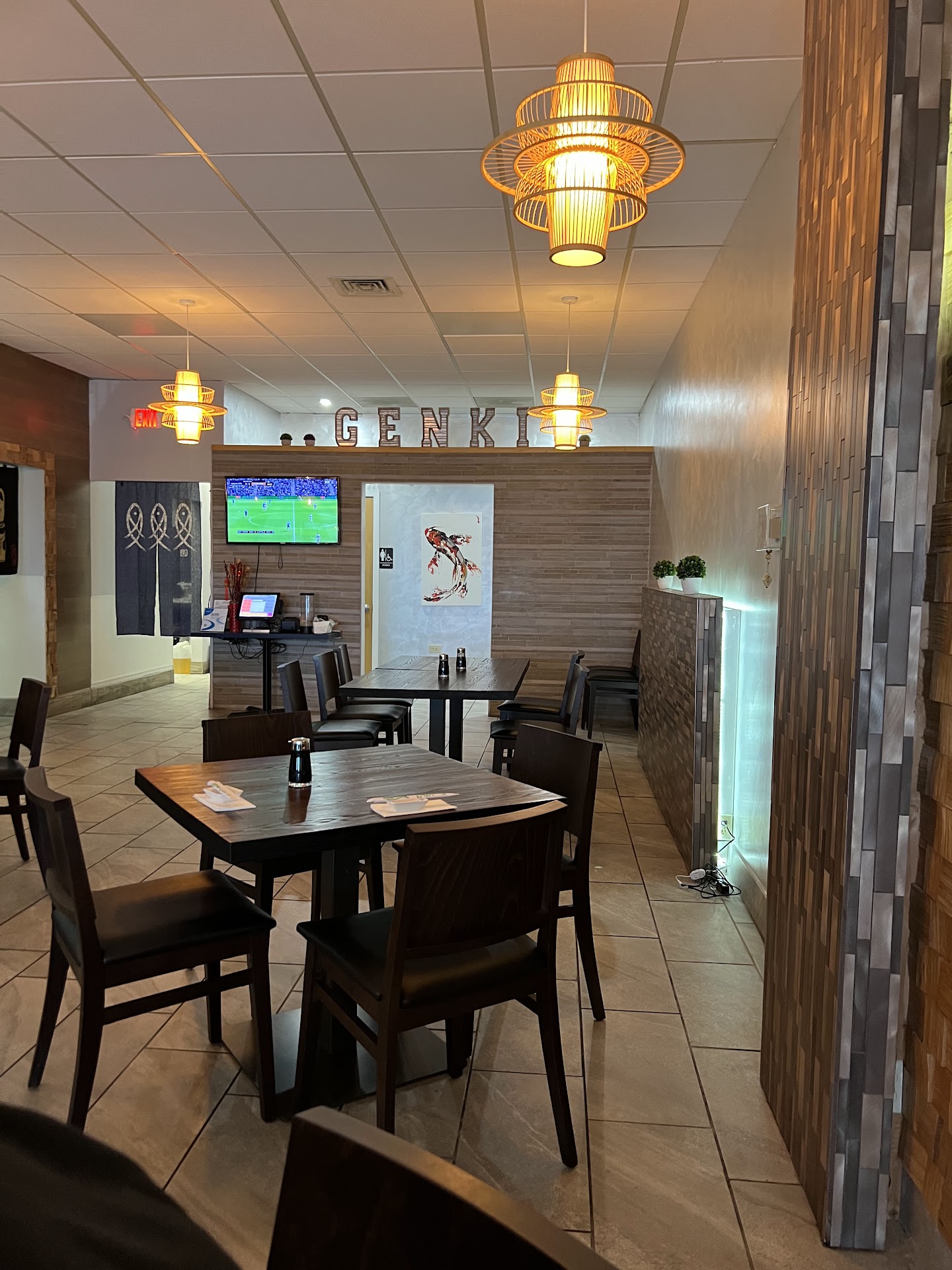 I don’t typically give a 5 star review, however there was nothing negative about my dine-in experience. The atmosphere was very clean and modern, if there was a negative about the atmosphere I would say the table felt sticky but I believe it was due to the type of table mixed with whatever cleaner the restaurant uses. We ordered a Pepsi, raspberry tea and a water. As an appetizer we ordered the calamari which came with a sauce that tasted a bit like eel sauce or soy sauce, it was good but I was not fond of the calamari batter I would rate it a 6/10 and may not order it next time. We also ordered the chicken fried rice which had egg, onion and scallions with thinly sliced chunks of chicken. The portion for $14 and change was definitely enough to share between 2 or 3 people. We had leftovers and the leftovers were just as good if not better than when it was served. The Japanese Bagel Roll, Spicy Salmon Roll and Caribbean Roll were the three rolls we ordered and they were delicious, flavorful and well presented. We were also given two pieces of a sushi roll on the house which I thought was very neat! Now for the service, 10/10! Extremely friendly, I couldn’t get over the friendliness of the two male waiters which I wish I had gotten their names! Upon arrival they immediately asked if we needed a high chair for our son, the service was quick with a smile, they gave us a complimentary piece of sushi, always made sure our drinks were full, asked if we needed anything and made sure we were enjoying our meal! I was very impressed with the customer service and because of that alone we would go back! I highly recommend trying this...