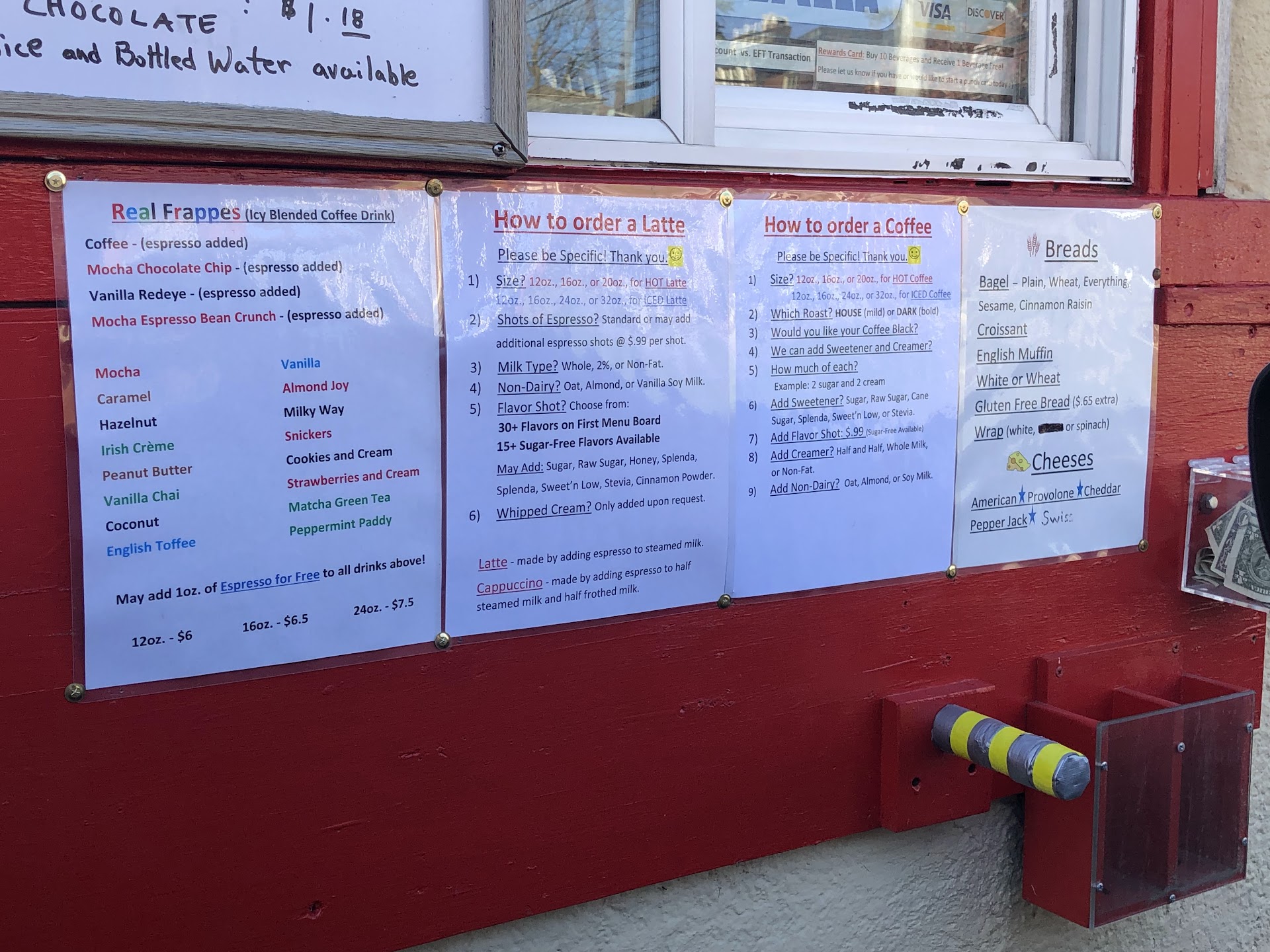 Ā Ā Ā Read moreFinally, I tried this spot! Since you cannot go inside, I ordered online in lieu of waiting at the drive thru widow. I left special notes in the comments section on how I wanted my drinks made, and they catered to that! I was disappointed that the peanut butter was a syrup flavor and not the real deal, so my (hot) latte didn't taste anything like I imagined, but still good. I also ordered an almond joy latte (hot) for my mother, who said it was good. Both of our drinks had a lot of grounds/powder at the bottom and tasted burnt about 3/4 of the way through, so we didn't finish them. I'll be giving another try in the...