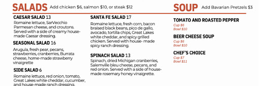 We visited North Channel Brewery for lunch and were, for the most part, very satisfied with our meals. While we didn't go for the brew, I liked the fact I could get a 5 oz. serving. I usually don't drink that much, and the regular sizes I usually get are way too much for me, so the smaller serving was a pleasant surprise. I had the Salt City Blonde, which was a bit hoppy and had a slight bitter aftertaste, but as my server noted it would, it did grow on me. My s/o had the Blueberry Cider, which we both found excellent. Our very helpful server gave us tastes of the Vogue Dubble (which I liked better than the Blonde), and a German beer I don't recall the name of.