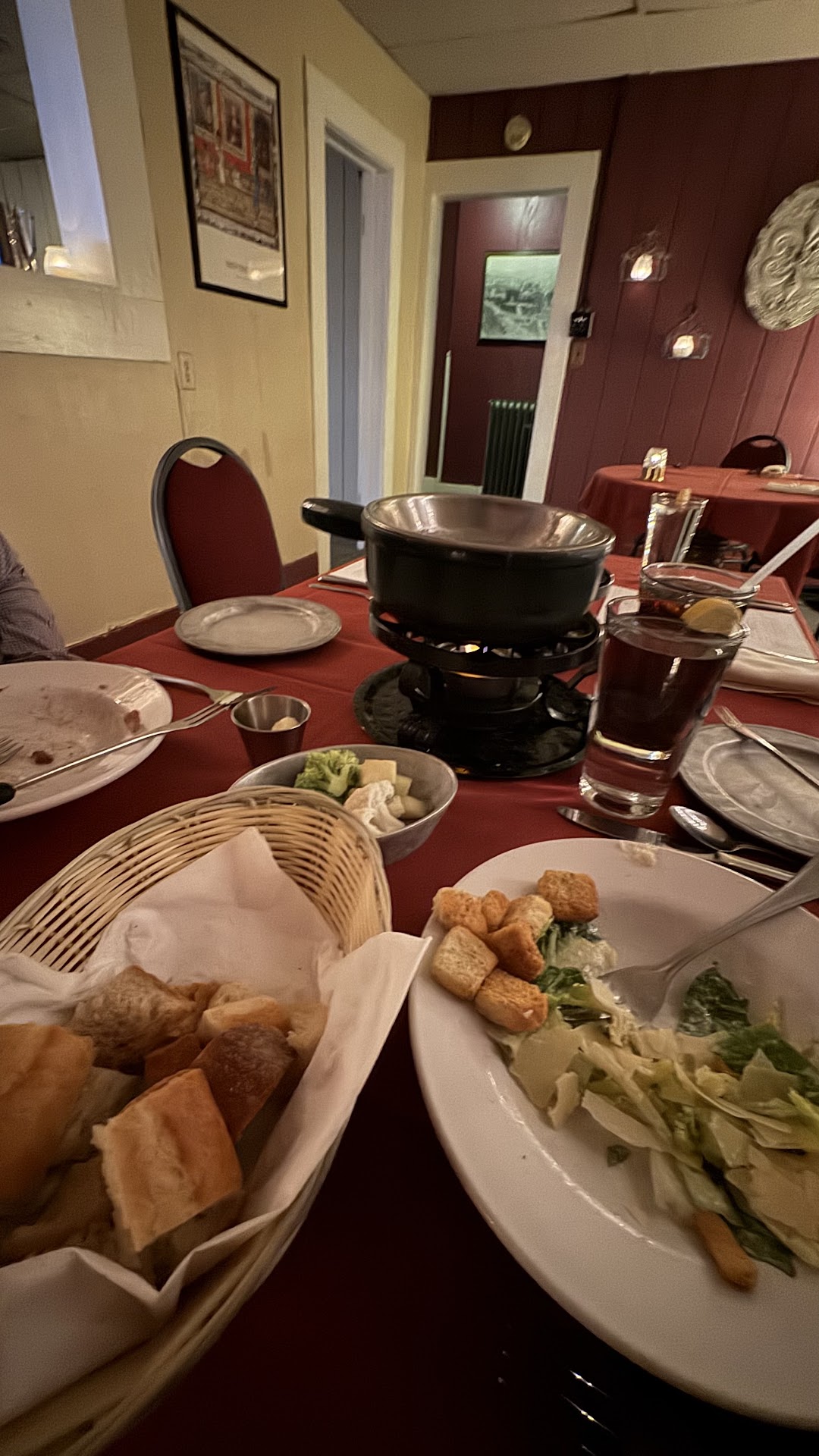 Read moreThe building is in a decent location and has a beautiful old time decor setup. That’s about where the positives end for me. I made the mistake of choosing this “fine” dining restaurant for our 6th anniversary dinner. We were seated in a dark, dirty corner of the restaurant. The wall we were placed next to had food splattered on the wall that looks like it had been there a while and become part of the fixture. The ceiling tiles about 8 feet above us had oil buildup and look like they as well haven’t been cleaned since originally placed (right above my wife was an orange raindrop buildup of grease I thought might fall on her) We chose the 4 course meal and went with the basics for everything and chose an upgrade for the cheese fondue. The salad was light on dressing and took 10 minutes to get to the table while the restaurant wasn’t close to busy, but what dressing there was in our garden salads did taste great. The cheese fondue was properly prepared and tasteful but rather skimpy on the amount in the bowl. The meats that we cooked at our table were not choice pieces and essentially flavorless. To combat this they give you a dip tray of sauces. The sauces were flavored well, but we were only given enough to dip each sauce maybe twice before being out. Finally, for the desert we chose dark chocolate for the dipping base. The dark chocolate was overly sweetened, but the dipping accompaniments were tasteful fruits (strawberry, pineapple, apple, banana) and some desert breads (decent, but the graham cookies they provided were like cardboard and tasted as such). Overall, this was overpriced, the service was suspect, the restaurant was dirty and we were made to feel like anywhere else “fine” dining would have made our anniversary experience better (stated during reservation and arrival it was anniversary and weren’t talked to about it or congratulated. This isn’t necessary but we chose there to make the night feel special and supposedly they are good at doing this). Would not recommend for anyone to spend your money here let alone celebrate an...