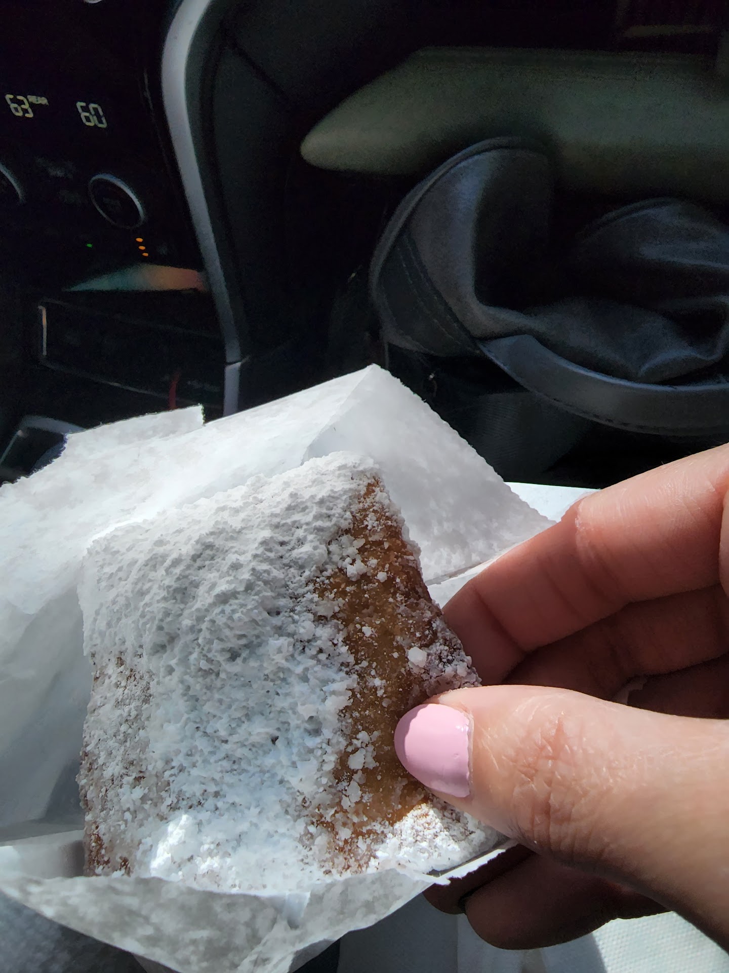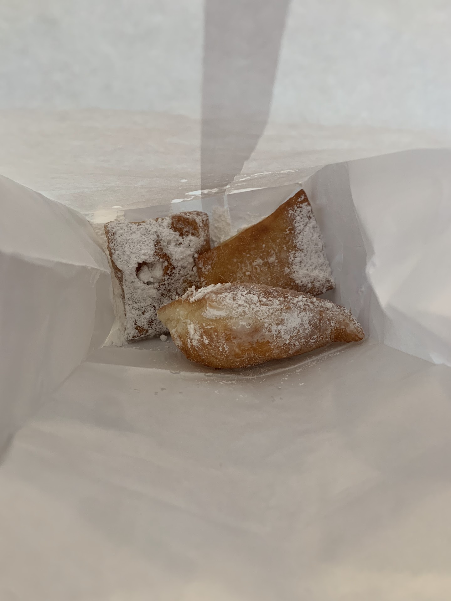 The powdered sugar on top did not melt and was able to hold its own on the hot beignet.