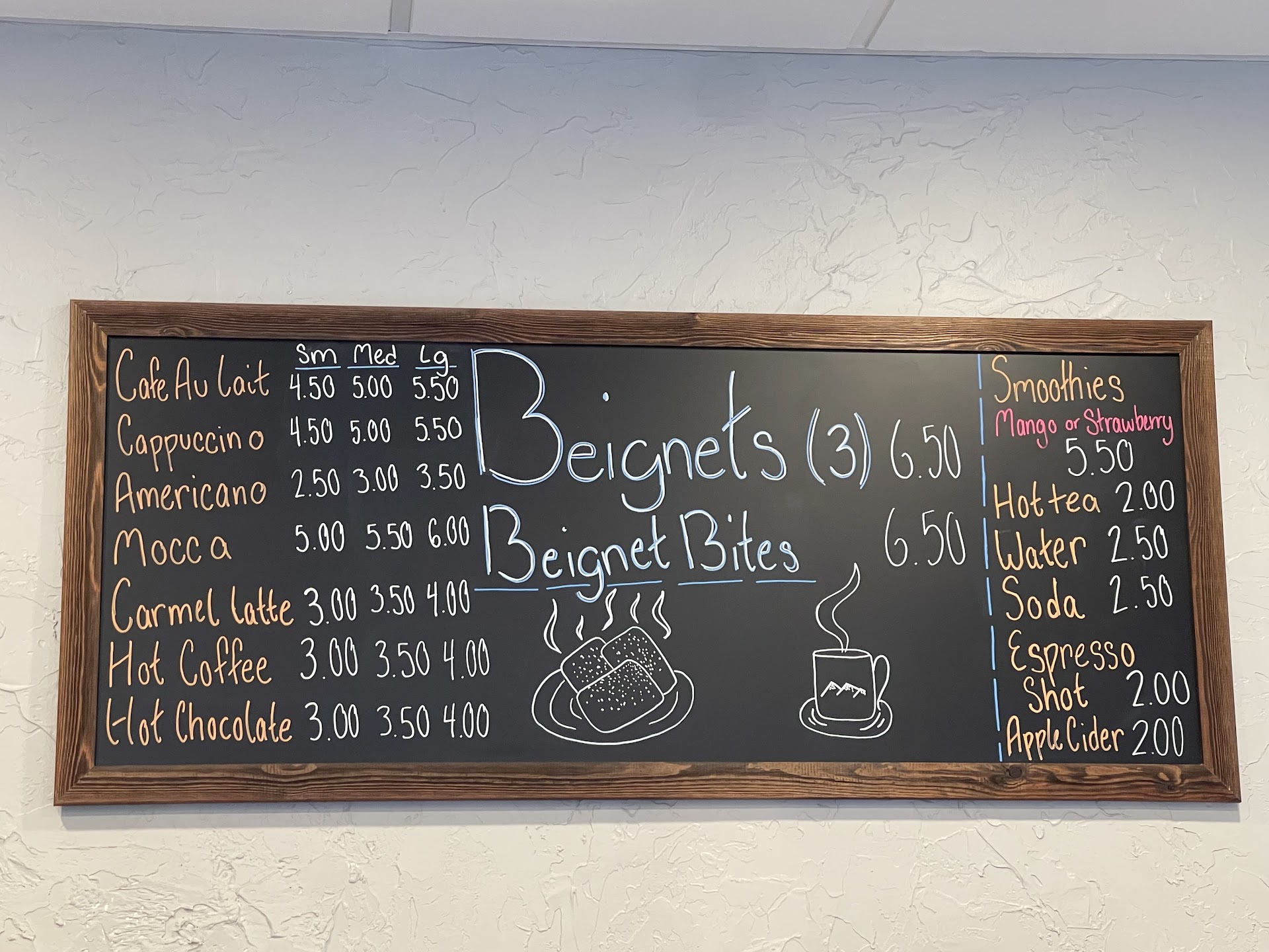 Read moreExcellent spot. Always a go to when dropping by Manitou Springs. Small menu but when it comes to beignets, what else do you need other than coffee? There have been times the line is out the door, luckily this go springs our group was able to walk in and place our orders before another rush ensued. There is decent seating inside, though it can get pretty hectic in the winter when it’s not as ideal to sit on their outside deck.