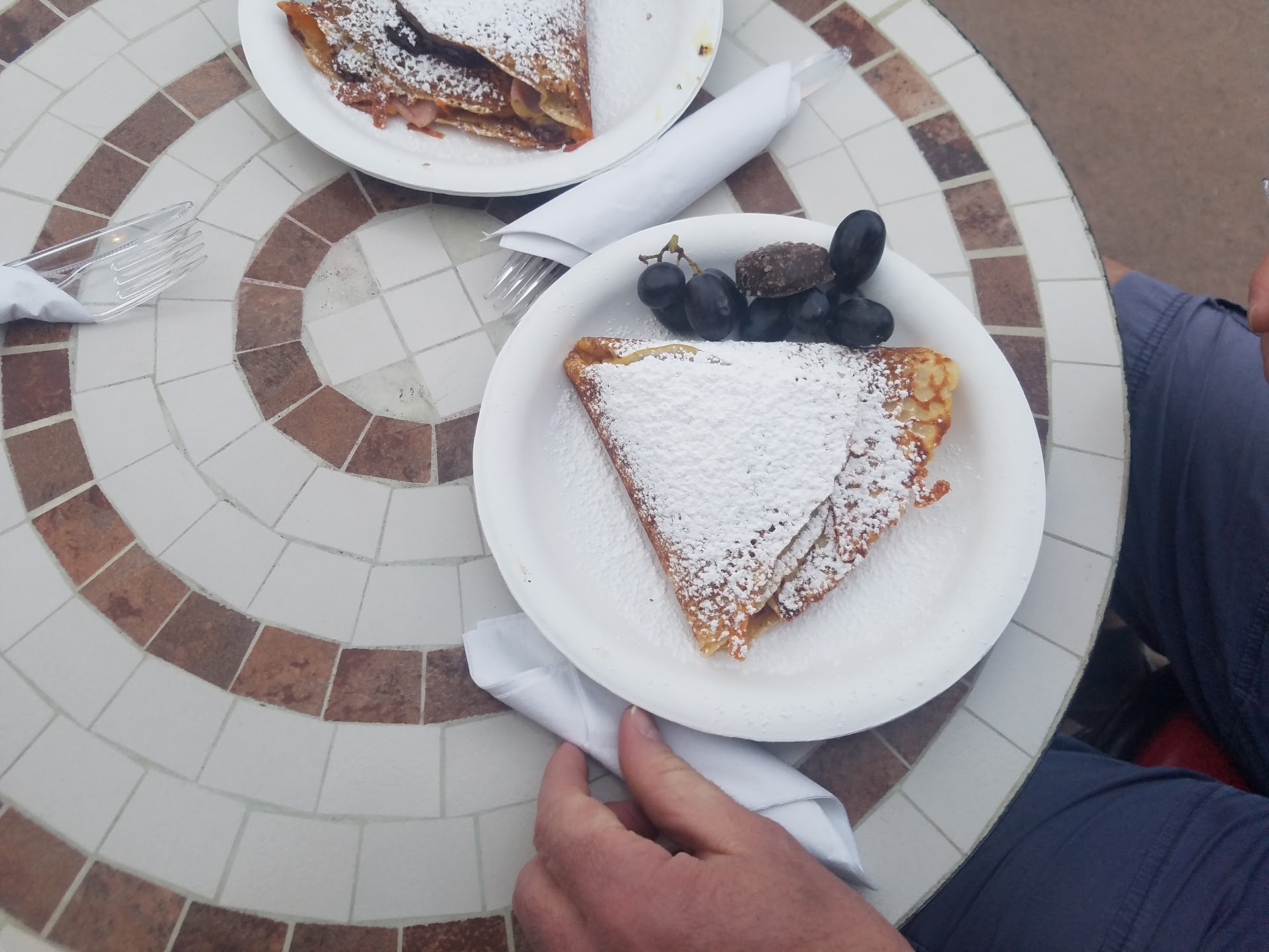 Stopped at this very cute hut for some sweet treats. I was hopeful that they had actual shave ice as they had it spelled âshave ice,â but no⌠it was super chunky, blendered ice. My kiddo had a hard time chewing the ice because it was so crunchy and hard (Hawaiian shave ice has a much softer, flaky consistency as itâs shaved off of a huge block of ice.) My crepe was very disappointing too. It took almost 15 minutes- we were the only customers at the time. It was thick like a pancake and the toppings were a big, sloppy, soggy mess. I had the lemon & blueberry one and couldnât take more than a few bites. It was like they warmed frozen blueberries and dumped them on top because there was so much liquid on everything. I actually tipped it and poured at least 1/4 cup of juice off the plate. Also the âhomemade whipped creamâ was reddi-whip. Pretty big bummer. Itâs such a cute and fun setup and the signs are...