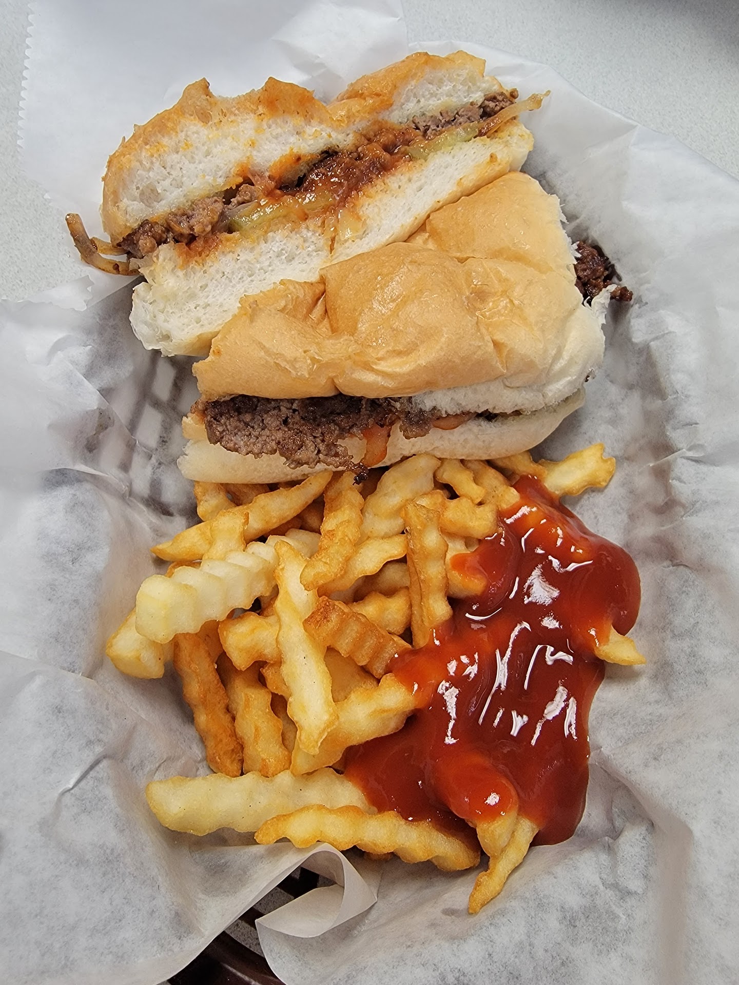 Stopped here during a road trip with my son in 2022. Wanted my son to experience having an old fashioned style burger. Bud Williams delivered! When you walk in, it definitely had the feel of stepping into an old soda shop from the 50's. From the fixed stools at the counter, to the old solid booths and tables. The aesthetics were exactly what I was lookin for! The burgers, fries and shakes were excellent and so fresh! However, I wasn't very pleased about the a la carte menu. They did have a written special for a burger, fries and coke but we wanted shakes and our waiter was clear about no substitutions. So, we had to order a la carte. Walked out spending only about $20 plus a tip but we didn't really leave physically satisfied. We both could've eaten more. So, the prices were just fine but the portions could've been bigger. When you order a double cheeseburger, fries and a chocolate shake, you expect to get a big burger, a basket of fries and a shake that fills the malt tin. The burgers were quite small. Even my double was gone in 4 bites. Was about the same size as a McD's double cheese. The fries came in a tiny basket. Maybe 20-25 fries tops. Also, about the size of a small order for McD's. The shakes weren't much bigger. Was hoping to get more for my buck but it's not the 1950's! Needless to say, we had to eat again in the next town but we were very satisfied with quality and taste of the food! If you visit here and you're hungry, order everything large and order 2 doubles! Please patronize...