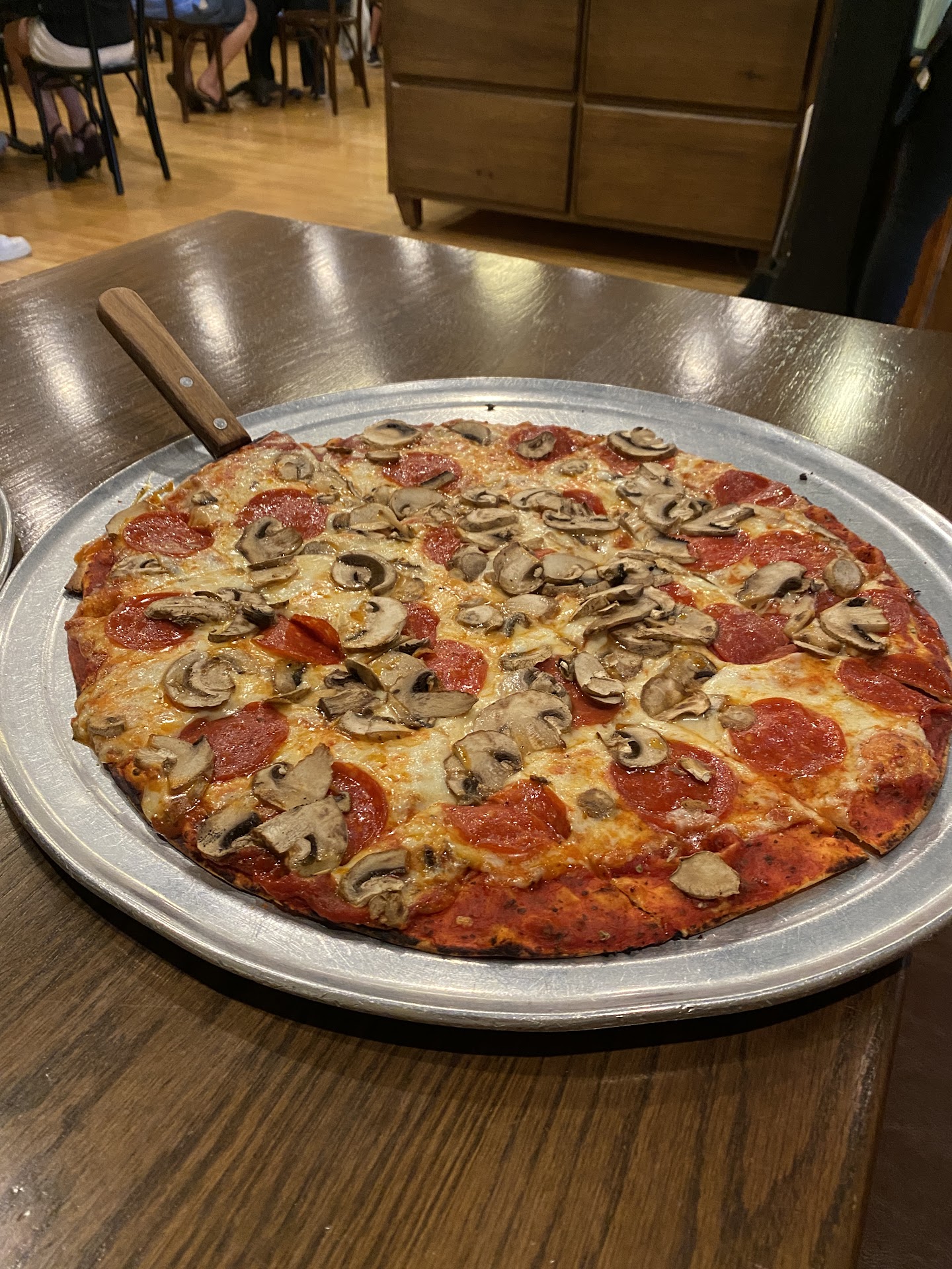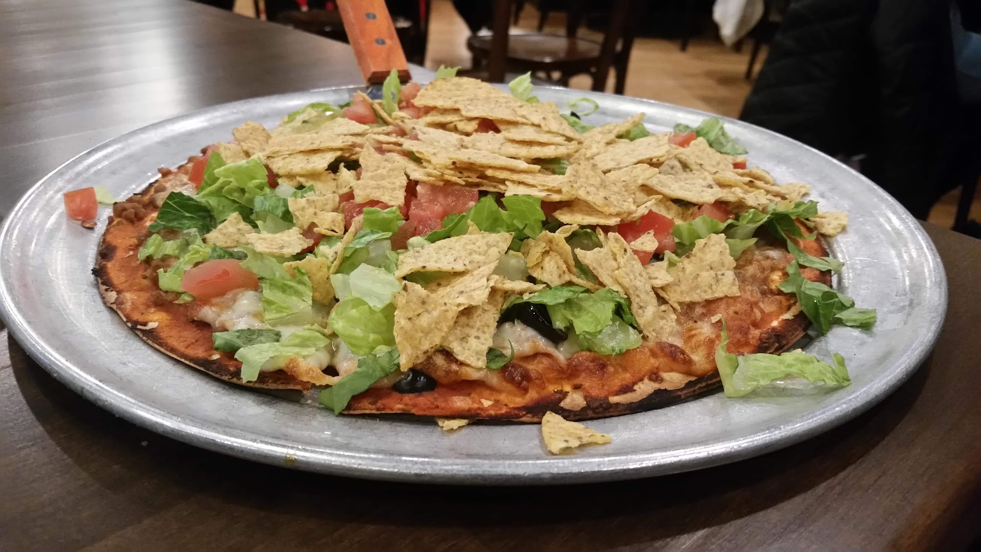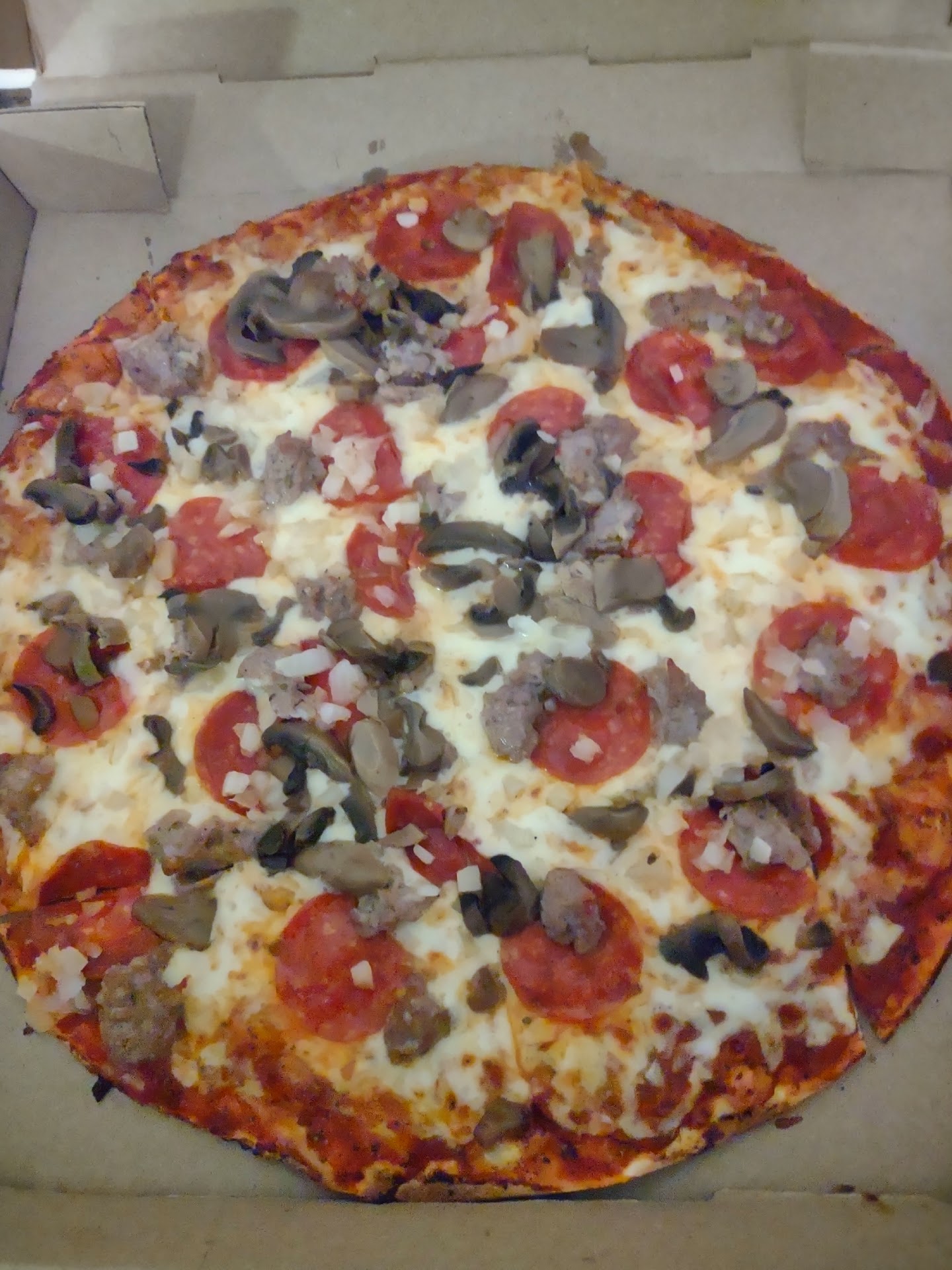 Read moreWe went for pizza on a Thursday night and the place was busy. Our waitress spent all the time necessary with us trying to determine it's good to have beer. ordered a large pizza with three meats, olives, Green peppers, onions, fresh mushrooms etc and a Greek salad appetizer. The salad was more than enough for two people and when the pizza came it was absolutely delicious. It is a thin crunchy crust (not soggy) with a light spread of red sauce, enough cheese to taste but not overly cheesy and ample toppings. I did notice that the pizza was not as salty as pizzas I have had before add other restaurants. The atmosphere is very upbeat, the place was impeccably clean including the bathrooms and I would definitely come back to try other pizzas or do you order this one. it was actually some of the best pizza I have eaten in a...