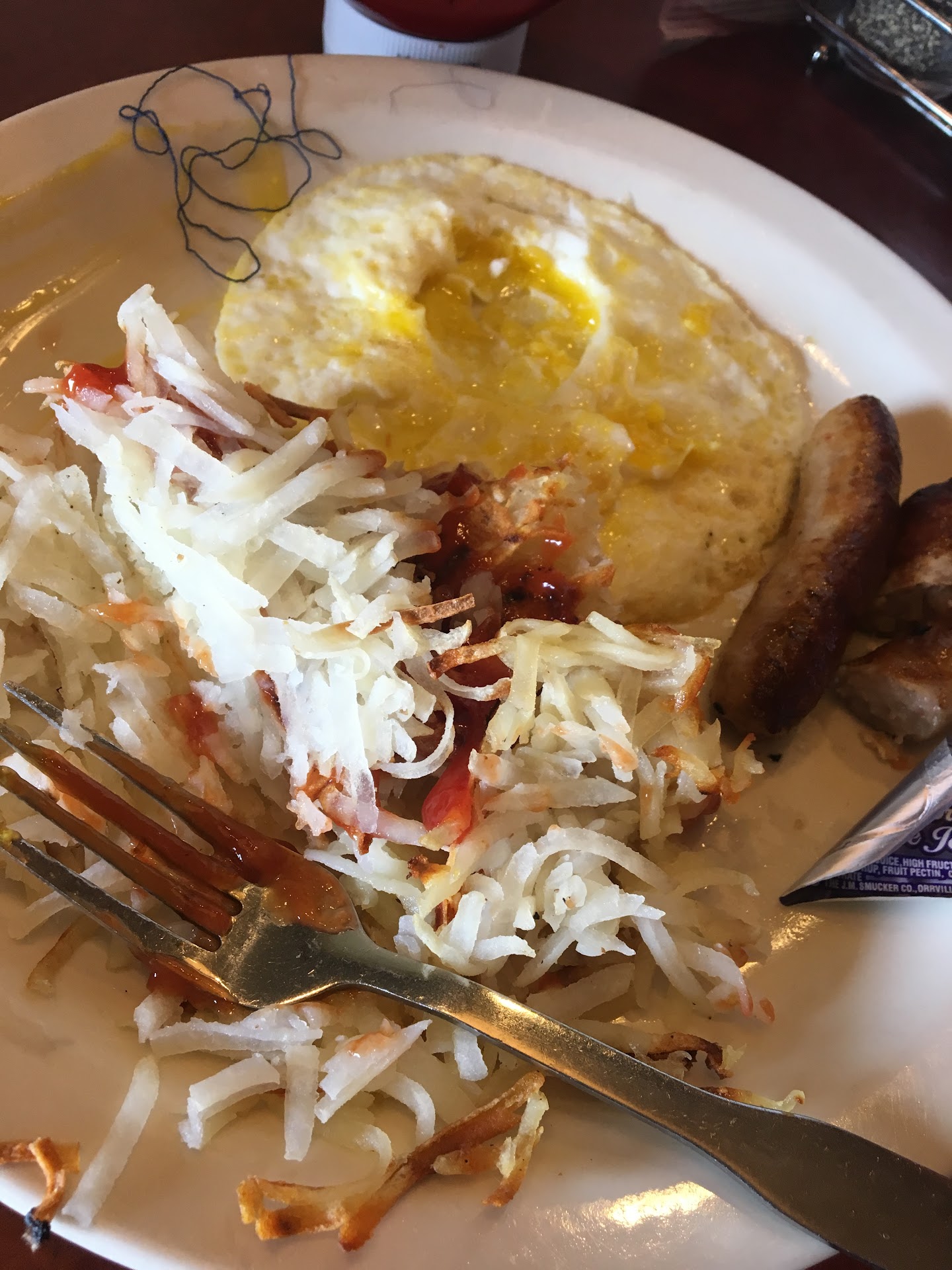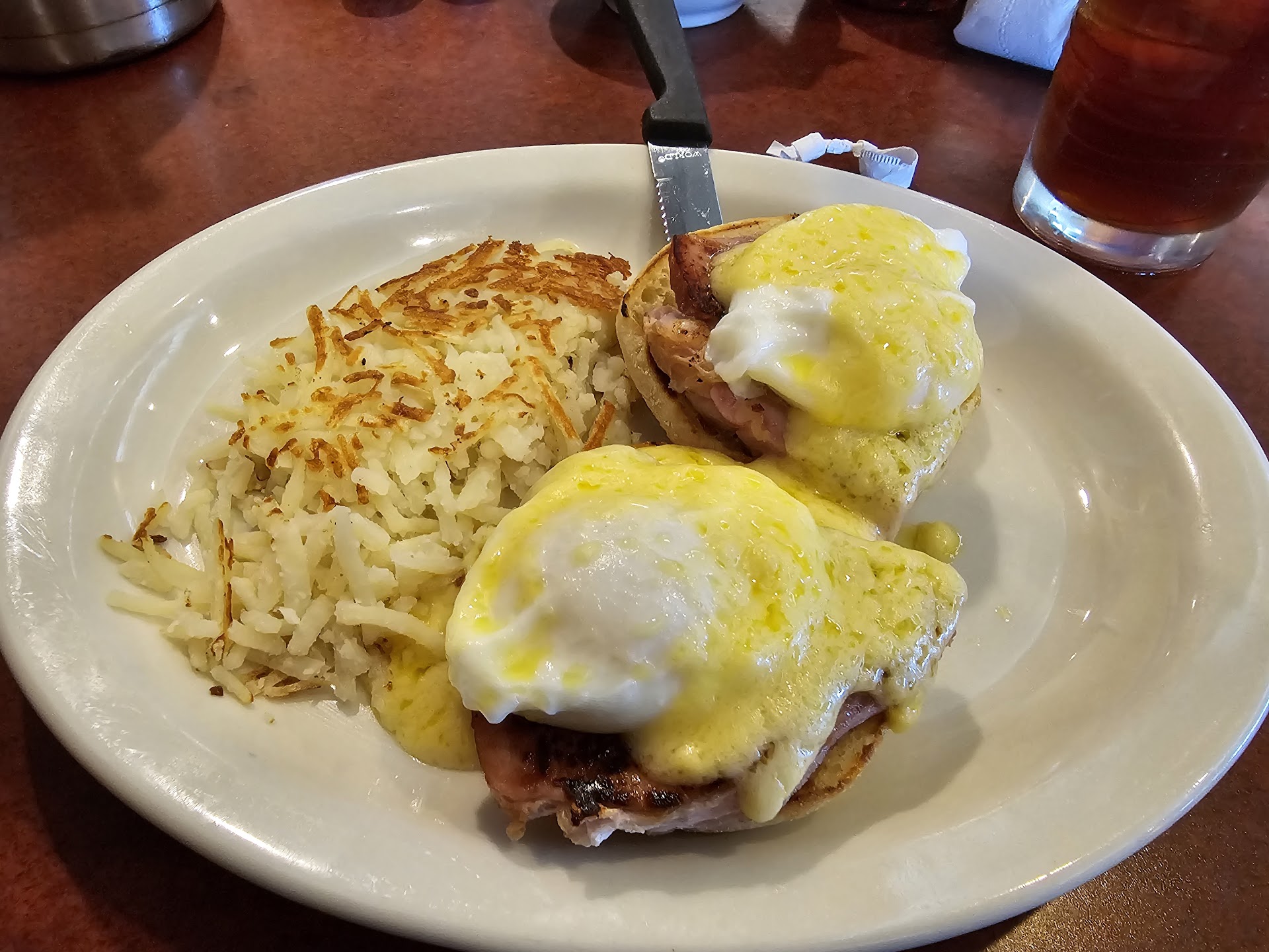 My husband was happy with the tuna melt with coleslaw and I had the strawberry crepes with a side of fruit, which was the same as I remembered. They were willing to put the sausage in a doggie bag so it never touched my food (and the dog loved it).
