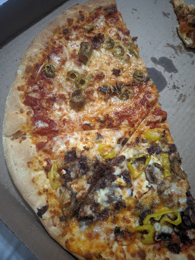 Has roughly half the amount of standard toppings. E.g. Sausage is 1 per slice, cheese is much less than regular. You have to request "extra topping" to get the same regular amount as other places. This ends up costing a lot more.