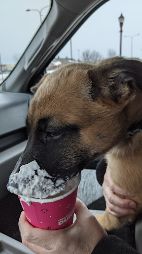 "DUNKIN' DONUTS" has been our "GO-TO PLACE" for great pastries, croissant breakfast,(or anytime!) sandwiches, filled croissants, avocado guacamole spread on toast w/w/o bacon bits (yum), top of the line coffee, tea, mixed varieties and blends, juices, (my favorite is frozen blended Chai tea w/ a pump of Mocha Chocolate infused with whipped cream!), many new and unique donuts and discounted donut dozens before they close for the day. However,how could I forget "PUP CUPS" for the dog, who just happens to be along for the ride? Just the right amount of whipped cream in a small cup, designed especially for your tongue-lickin' canine companion. "DUNKIN" also displays photos of their "doggy". friends enjoying their treat In the outside window of their drive through! THERE ARE 2 OTHER THINGS THAT I GREATLY APPRECIATE ABOUT "DUNKIN'", WHICH. PERHAPS I SHOULD HAVE MENTIONED BEFOREHAND: THEIR SUPPORT OF CHARITIES FOR KIDS, AND ANIMALS' PET SHELTERS FROM THE. "ROUNDED-UP" PAYMENTS OF THEIR CUSTOMERS, THEY ALSO GIVE SUPPORT THROUGH THE SALE OF THEIR PRODUCTS SUCH AS MUGS, AND A "SPECIAL LINE" OF "DUNKIN" PET TOYS,( SOFT, CHEWY,AND LOVEABLE). Last, but certainly not least, "DUNKIN'" offers a points rewards program as a "Thank you" for their customers' loyalty to their edibles, drinkables, and support of other charitable causes. "DUNKIN' COVERS ALL THE BASES, SO TO SPEAK,...