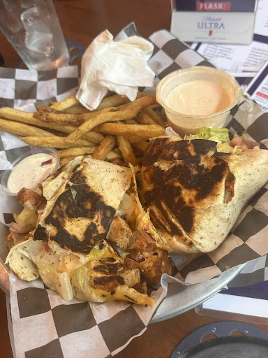 I had a horrible experience. Waited 20 minutes after sitting down before having a waitress come take my order. Waited another 20-25 minutes to get my food. My food was burnt, didn’t have the sauce on it, and chicken was over cooked and extremely dry. I am a regular at the flask. I get the southwest chicken wrap every single time. I know what it’s supposed to look like. They were not busy at all either. I went at 4:30/5. The general manager was our waitress cause I read her name tag.