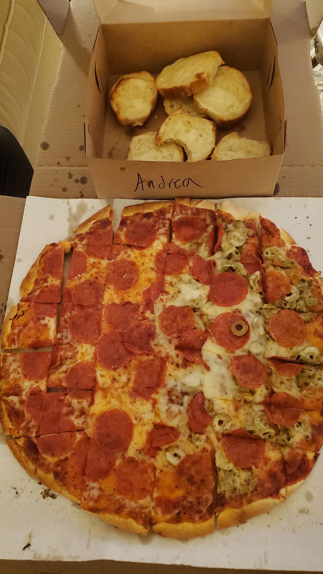Delivery was prompt and very thorough in getting hold of me by phone when arrival at my address proved rather more unusually complicated even than anticipated. The delivery driver's bright and sunny disposition carried over some of the glorious day's sunlight into twilight hours, arriving as he did just a few minutes after the sun had gone down though still casting its light refracting red through breaks in the cloud banks rolling in more or less from the north. The pizza — four meat — arrived hot and fresh in a pristine well folded (indeed, well designed) cardboard box printed in with the food purveyor's trademark name and informing me that they've also got a location in St Peter (which was of course supposed to be the state capitol at one point). My visitor (who chose four meat from a short list of popular options) had informed me (when this business's listing had shown up from a Google maps search for "pizza" as an alternative to other name brands with greater market share dominance and name brand recognition) that this establishment uses Wisconsin cheese which I took as a recommending the product as a dish with specifically regional roots, likely showcasing high quality agricultural products a step or two closer to source than anything any national chain could possibly have to offer. It is delicious, featuring a perfectly edgecrispy dry soda cracker crust overlaid with delicious tomato based sauce and meat based ingredients (the basic spice combination of which In the ground meat distinctly calls to memory the haggis of Robert Burns Society lore). One mightn't hope it'd not be overlooked from one who'd had it on the banks of river clyde because of how it worked. I very much look forward to trying something completely different next time and am confident in everyone whose time and focus went into making that once in a lifetime experience completely irreproducible until today an unexpected twist in a surprise turnt up a distal memory stored as taste banks going back a good four...