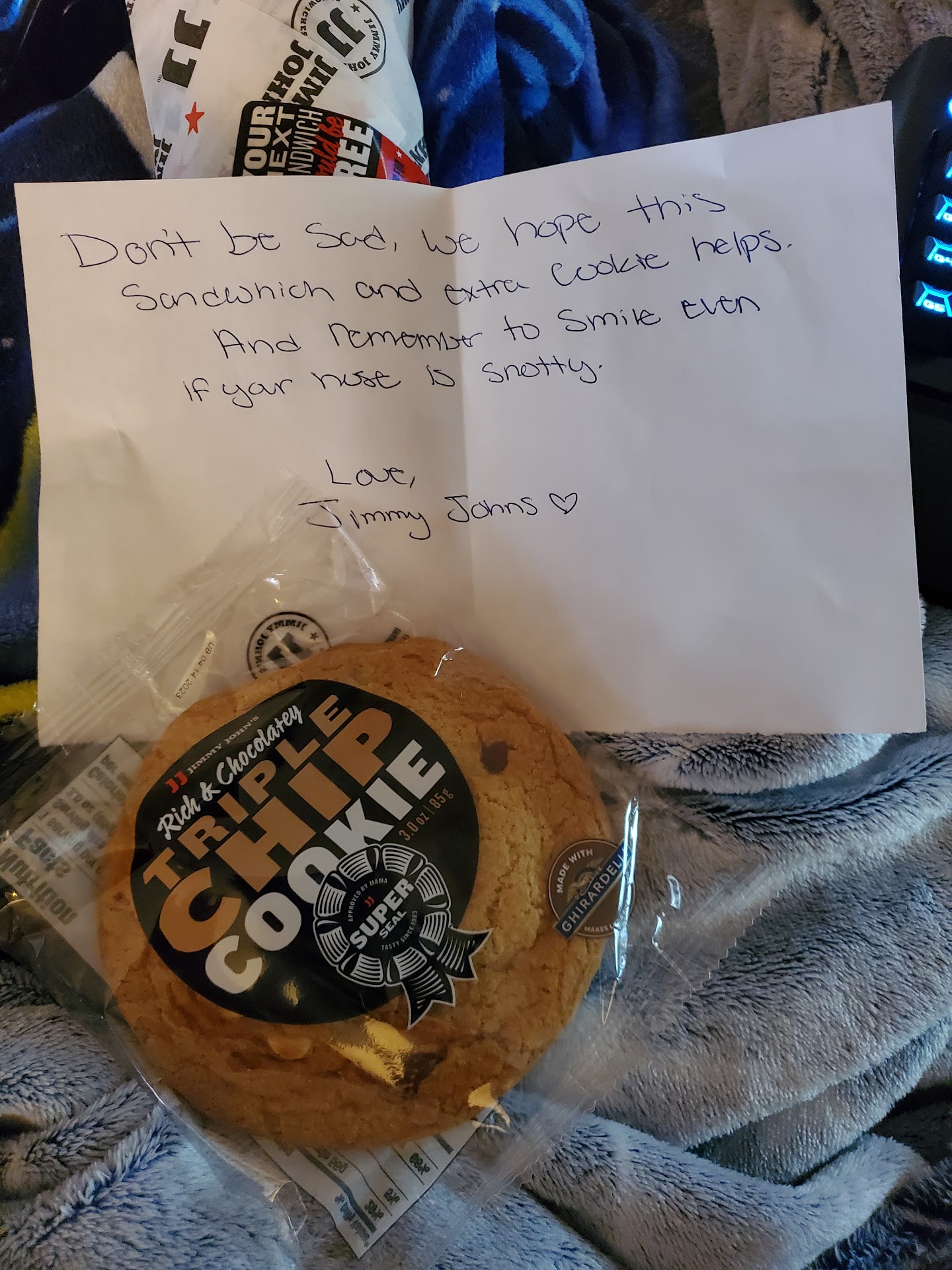 P.S. Jimmy John's, I've already filled out the...