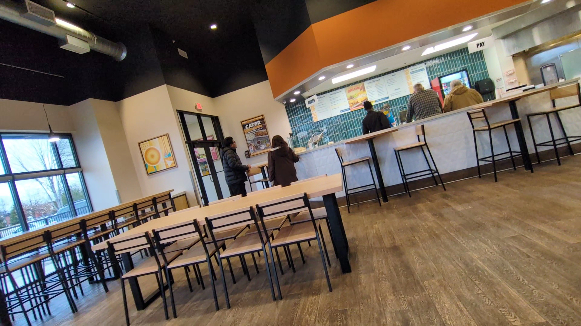 That is a no, the staff is friendly and the tables are clean but that's the only good I can say. The music was cranked up way too high making ordering a chore and seating was worse than when it was a Massad’s there years ago. It indoor seating looks like it could hold up to four to five groups at best before it becomes a nightmare for any one wanting to order food. There is no room to line up for your order so if even 3 people are in front of you it becomes a claustrophobic disaster.
