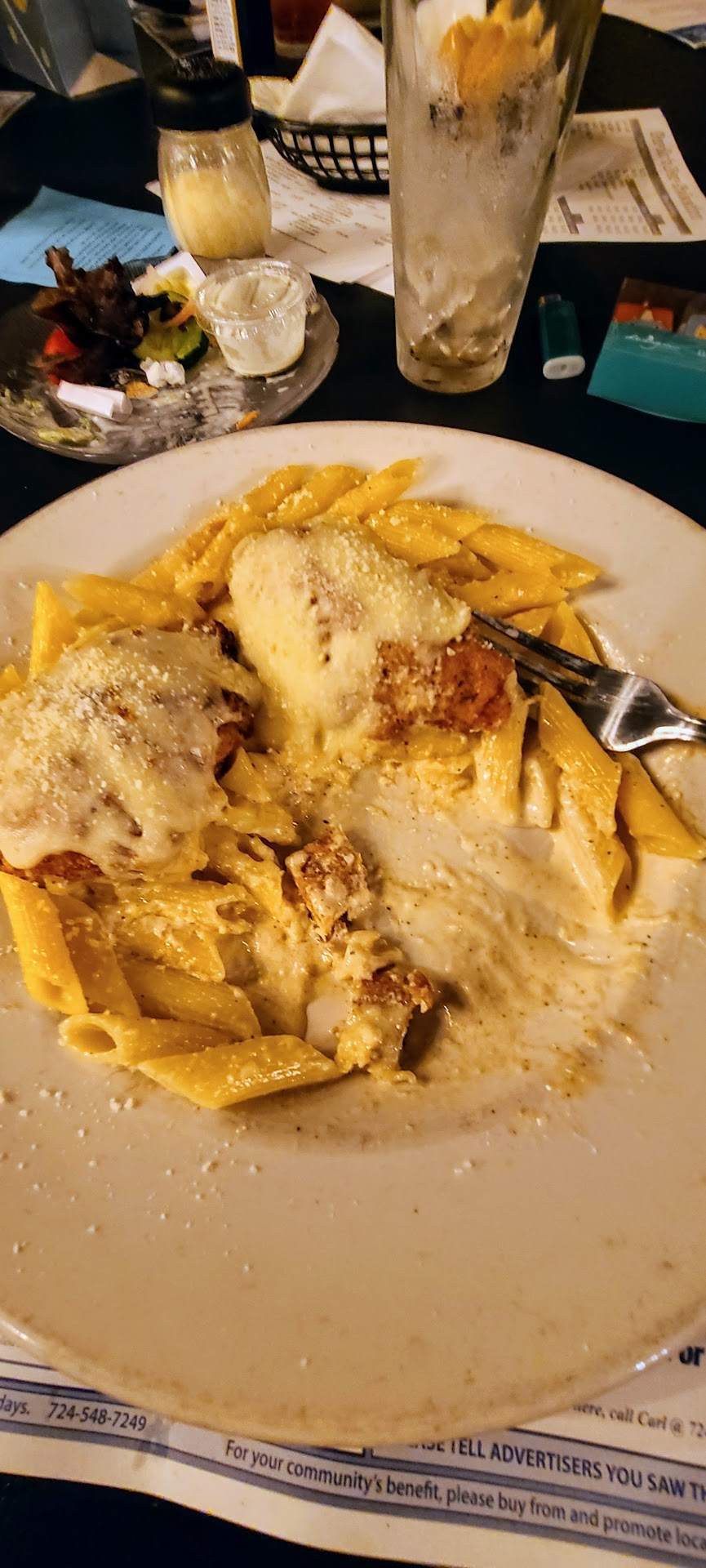 Read moreQuite possibly the worst dining experience and 'Italian' food I've ever had. Honestly, I wouldn't even leave one star if I didn't have to. Upon entering, stood in a small, crowded bar area for well over 20 minutes before even seeing someone who resembled a working employee. Finally, we tracked down a hostess who cleaned off a table and seated our party. Waitress did not seem thrilled at all to be given another table. Ordered drinks and an appetizer to begin. Despite the lackluster appetizer, we ordered meals. Being that this place is a so called Italian establishment, I found it shocking when the waitress informed they were out of spaghetti. Really? Inexcusable. Prior to receieving our pasta, we were treated to bread which was stale and a salad that consisted of simply lettuce and one cucumber slice. When the pasta finally arrived, we were warned that the plates were super hot and not to touch them. Either the food was microwaved, or it sat under a heating lamp for an extended period of time. The pasta was overcooked, meatballs were burnt, sauce was watered down, and in general everything was very bland. I was hoping to add something for flavor, but parmesan cheese is not something you will find on the table. I asked the waitress for some cheese, along with refills, but neither ever arrived. We also sat at the table for almost 30 minutes waiting for a check. Terrible, terrible, terrible. Trust me when I say this, you're better off grabbing dinner from the gas station down the road. I would not return and definitely wouldn't recommend this place to anyone....