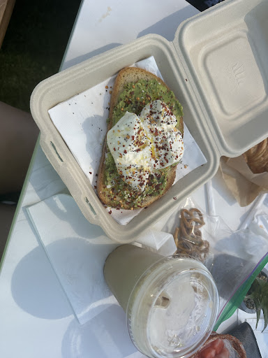 Read moreSo glad to have a nice little coffee spot in the area! The service was kind & fast, the avocado toast with burrata, and croissant was all so scrumptious. The iced honey lavendar latte was perfect on a hot sunny day. Salted caramel iced latte and sandia aqua fresca were also delicious. Went on a Sunday around 10am, was not crazy busy, probably second in line and seating was opening up fast. The shaded area, fountains, and swing is a nice touch. Everyone was talking with eachother, kids who just met were playing with one another, felt like really cozy community vibes. Definitely going to be a weekly spot for our familyâs morning coffee...