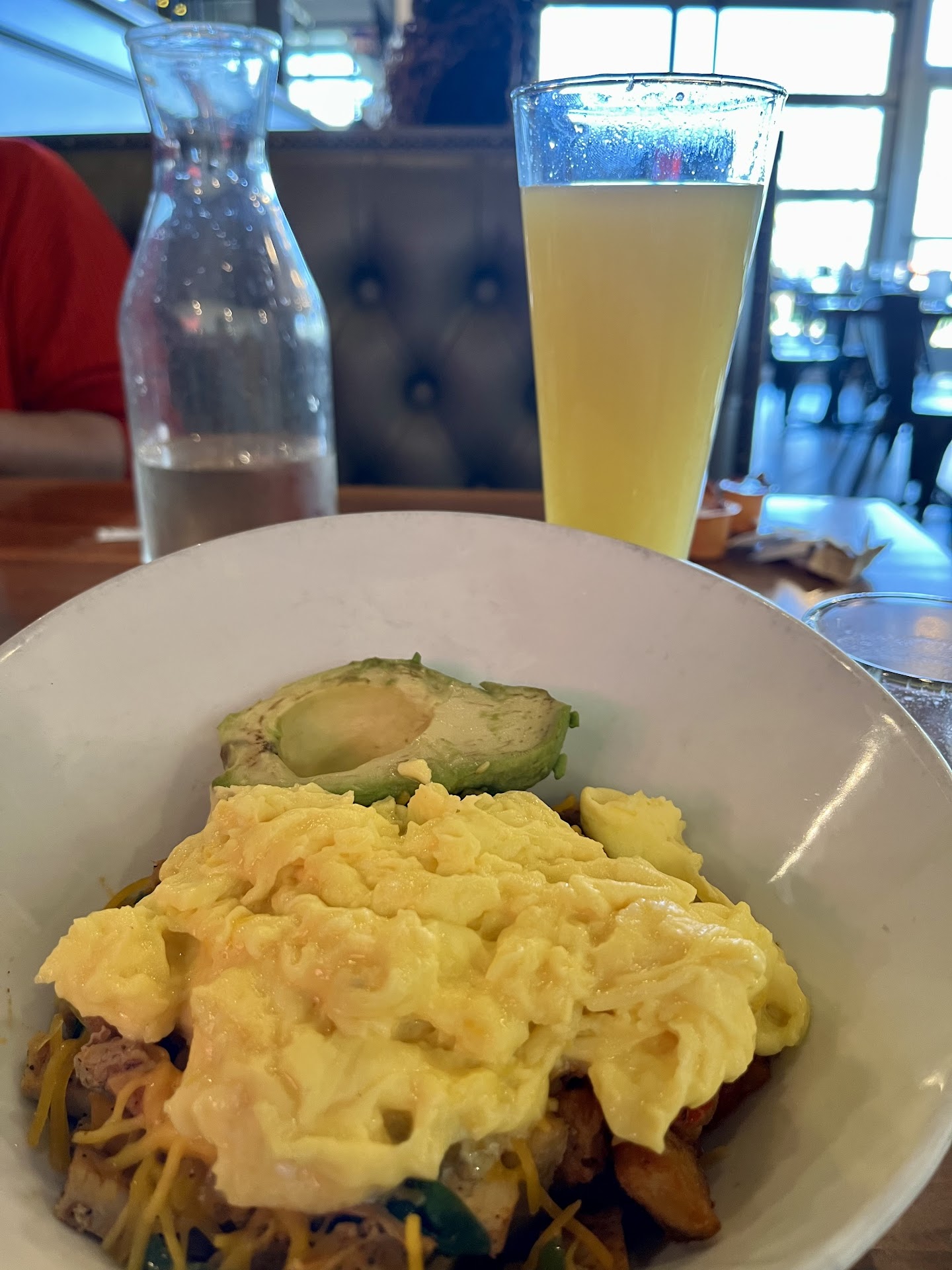 Read moreThis restaurant is not bad, but it also isn’t particularly good. I’ll start this review with the atmosphere, at first glance the atmosphere is trendy, and cozy hip establishment. I like the initial look, and I really like the setup with the bar. It is cool to see the liquor on the overhead shelf. And I like the pink neon sign and light fixtures with the Edison lights. However upon further inspection it is clear corners were cut and it doesn’t take long for the atmosphere to shatter. Standing by the host stand waiting for a table I saw their advertisement for the special, it was a piece of printer paper taped to the wall, this could have been drawn on the chalk board by the host stand, or atleast framed, instead it was an eye sore. taking a closer look at their bubble light fixtures they are either plastic, dirty, or both, just detracts from the visual quality of their decor. Upon being seated my party was served water, their water glasses are plastic, which just kind of rubs me wrong, this may seem kind of knit picky, but ask yourself how many medium end establishments have you gone to recently where you were served anything in a plastic, it just feels cheap. Service was friendly, however not entirely knowledgeable about the menu, and not particularly swift. One of my party members asked about whether or not an item came with cilantro and if it does to not put it on their food. Our waiter tells her the item does not have cilantro and has nothing to worry about. She gets her food with cilantro integrated into her food. (Side note cilantro is a somewhat common allergy, it won’t kill anyone but if someone says don’t put it in their food it is because it will make an entire item taste like soap to them) we got our food in a reasonable amount of time, but we had not been given silverware. We ask for this as soon as we were served our food. The girl that brought our food out shortly responds and walks off, we wait about 90 seconds, I set a timer. 3:13 later We have to ask a second time for silverware. By the time we get silverware our food has sat in front of us for nearly 6 minutes. The only food which I can speak to the quality of is the chicken and waffles, I enjoyed this item but it was nothing to write home about. I like the variety in how the chicken is served, a leg a wing, and breast, all fried. And I think they have an interesting idea with their approach to the waffles as I believe it was cheddar that there is a hint of in the waffles. All things considered this restaurant is alright, it doesn’t really set itself apart from others especially in the area, I would be more partial to first watch next time I go out for brunch in this area, but this establishment is not the...