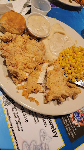 There is no real competition in town so I didn't have high expectations for this place while travelling for business. A coworker and I decided to try it out on Tuesday. Our waitress was pleasant and offered unbiased reviews of what she really liked and what she wasn't crazy about. I wasn't that hungry so opted for a bowl of red beans and rice and fried pickle appetizer. The beans were good and I took the rest with me to the hotel for lunch the next day. My coworker ordered the special of tacos, one shrimp, one pork, and one brisket. He raved about all of them and also took the rest with him. The pickles were seasoned well but very greasy. We were able to blot them off enough to make them palatable. Bottled domestic beer for me was only $3, his wine was also reasonable although I don't remember how much. We both agreed that there was no point trying a different option the next night and both ordered the special of chicken quesadillas which were generously stuffed and really good. Thanks to everyone at Billy Bs for a great meal...