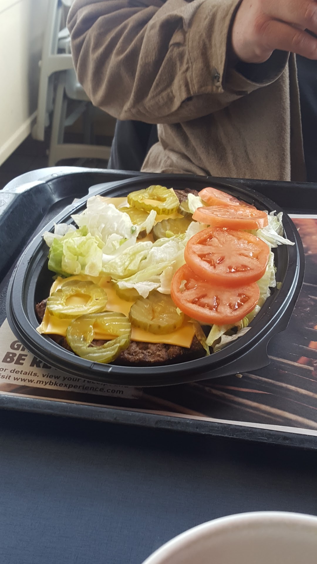Ā Ā Ā Read moreWe ate here 3 days ago. Worst mistake of our lives! The air conditioning system was leaking in our food and on us, it took 10 minutes for us to get our food when they were not even busy. I got the bacon king jr...JR is right that sandwich is the right size for a 5 year old. They basically turned a double cheeseburger into bacon double cheeseburger it was only as big as my palm and I have really small hands. To top it off we were sick the entire day after eating it. When we left they had violated a major health code by having the bank door propped open letting in flies from the dumpsters which were about 50 feet...