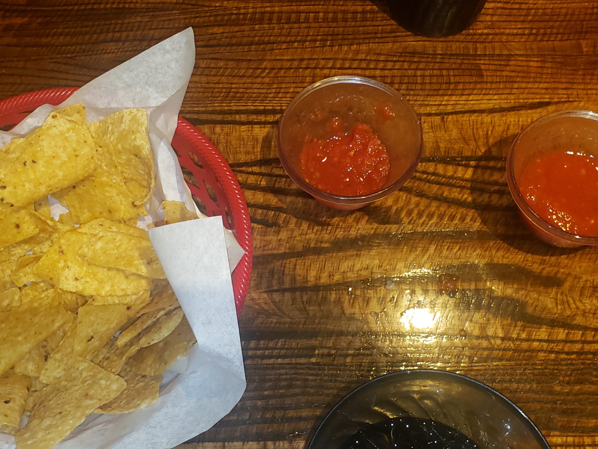 The food was average with only a few things standing out. The tortillas were amazing, hot and freshly made. They were just a bit too thick. They made me thirsty while chewing. My husband ordered the Mexican pizza and said he wouldn't get it again as it was too messy to figure out how to eat. It doesn't come sliced like a traditional pizza. Their tortilla chips are outstanding but the salsa was just okay. It had a nice spicy bite to it but it was heavy on the tomato base rather than being well rounded in flavor.