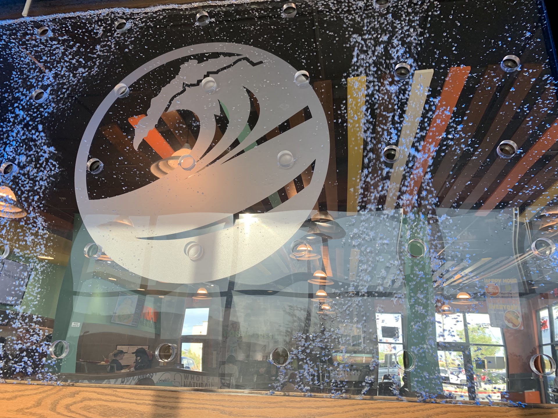 We stopped in here for grand opening at lunch today and to no surprise there were already quite a few people there. We got there right about 11 and there were 83 people in front of us. We know this because they handed out tags for the first 100 people visiting that give them free soft drinks for a year. Fun.