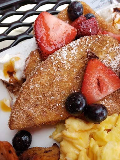 I was with a party of five. We went at a time when it was not busy, late morning before lunch. I was surprised it wasn't busy with all the hoopla I had been hearing. Service started out great and attentive but I noticed after the food was ordered we saw our waitress less and less. After the food came out there was something wrong with one of the plates as well as someone asked for a side small plate. The table was just about done and asking for to go boxes before the small plate or the fixed item came to the table. I did notice at this point that the place was packed inside and there was a long wait outside as well. I think noticed that it was only two waitresses working from the area I was in. Something like this I actually feel bad leaving a low score because this falls more on the staffing or karma of someone calling out or just quitting on the job. I was literally in shellshock when the plates arrived. Let me be clear, this maybe one of the top portion restaurants I have ever been too! I am a big eater and force feed my face at times and I was in pain when leaving from finishing the plate and eating too much. Just look at the pictures and the pure amount of size! Granted, when I ordered 'The Runway' I thought to myself... Self that is a lot of food but it won't be enough. They proved me WRONG! In my opinion it is hard to mess up flavor of breakfast foods. I mean think about it, eggs are eggs with a little seasoning. Toast is toast with a little butter. Bacon taste amazing just as bacon. Pancake comes with a flavor already you just pour it out and flip. What makes breakfast special? When there is something DIFFERENT (and seasoned but that is another story)! They have something different (and well seasoned). The CRISPY CLOUD FRENCH TOAST. This is literally, a delicious cinnamony Churro that you know you have to buy when you go to an amusement park or fair in the shape of french toast with fruit and syrup. You read that correct... A CHURRO! I am not big into sweets more than a bite or two but this right here... this right HERE! OH MAN! I will also say they had some of the best bacon around. Thickly sliced almost the thickness of Thanksgiving ham is just how I like it! The table was not too thrilled with the pancake flavor although I thought it was fine. Homefries were bland Becky and could use more seasoning as I am used to the more salt/pepper or even cajun flavor styles. These were more just potato cuts with light attention to detail. Again going back to that what makes breakfast special question. Otherwise taste was not an issue and makes sense to why the rush came in behind us. This one was another hit or miss spot. On one hand, how can I get charged $9 for three pancakes and no sides? Then turn around and charge me $7 for a breakfast sandwich with a side? The hanger which was huge and filled the plate for $14.99 but a side of bacon alone is $5? Figuring out what to order and how to not break the bank was confusing and if you have kids who "only eat XY and Z" be prepared to pay. Going with adults only you can and will be able to figure something out. That something may not be as "cheap" as other places but it will be around standard prices. The lunch menu med a lot more affordable but I think breakfast is probably where they made their headway so supply and demand! This place is the restaurant equivalent of Dr. Jekyll and Mr. Hyde. One thing taste amazing and blows mind and the other basic as if you kids made it for you as a surprise breakfast in bed. One option on plate is a steal of a price and another is robbery at the street corner ATM. The one constant is the atmosphere is amazing. You are literally on a hanger! When you pull up it doesn't even look like a restaurant. I had to circle around 3 times before just hoping when I walked in I was in the right place. This may have overall been the hardest to score but in the end my heart and stomach want to go back to try their lunch so that in the end sealed the...