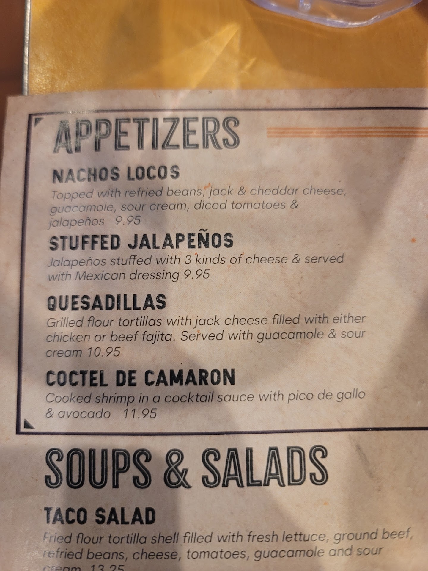 Read moreI took my wife here for her birthday lunch, we wanted to try a new place a little further away. First off, the atmosphere was very busy. It was a Saturday around 1300 so it was very bustling inside. Typical good restaurant atmosphere. The waitress we had (I wish I could remember her name) was fantastic, always spot on with drink refills like she was just watching from afar and as soon as I took the last drink she was right there, "can i get you more tea sir?". She was as sweet as can be. The time between ordering and getting our food was very short and let me tell you, I judge mexocan food restaurant's based on their sour cream chicken enchiladas and they were phenomenal! My wife got the brisket tacos, I'll be honest, I was expecting 3 little street tacos like every other place I've been to but I was very much mistaken. The plate arrived with 4 huge brisket tacos w/rice and charro beans, these things were loaded with brisket, she could only finish one and a half, so much food (they looked delicious). The price for 4 of us to eat (myself, wife, son, and a friend) was very reasonable, especially since I had a margaritas (house on the rocks, also delicious and huge) and my wife had 2 other drinks also. I personally highly recommend this place if you want some good Mexican food, in my opinion it's fantastic! We will absolutely be going back. The only gripe is the location, as it's right off the highway on the opposite side and the nearest crossover is a slight pain to maneuver through but definitely...