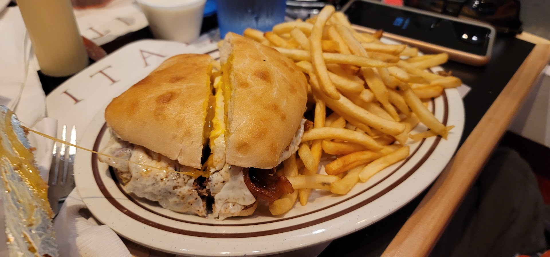 Second time I visited with family. We got lunch together and the food is solid. I ordered the meatball sub with thick cut curly fries/wedges. My folks split a tenderloin with mashed potatoes and gravy and an order of loaded fries. The food was mostly positive.