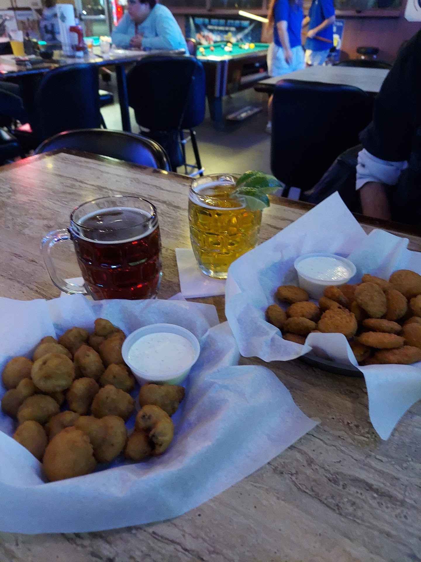 There is ample parking provided due to this fine establishment that is located in a shopping center. When entering, there is a door on the left to the bar, and the door on the right is the entrance to the dining restaurant. When going to the bar side, this section is 21 and up, but the dining area gladly welcomes anyone under 21. This is the spot to watch any sports games due to the abundant amount of TVs here. They have sports playing all throughout the day and night and are always playing your favorite Texas teams! They have pool tables and games to play along with a U-shaped bar with many stools. For seating anywhere beside the bar, they have booths along with chairs and tables. Did I mention they have TVs on each booth as well?