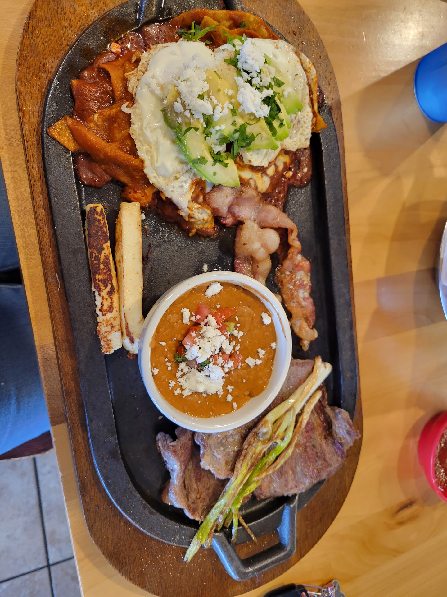 Read moreupdated review I had not been here in 4 years. And WOW what a change. The menu is beyond tacos. Panchos Tacos is now a full menu restaurant. I won't lie this change made me nervous. I had enjoyed the tacos before when they were just a small stand outside. So I've been a fan for awhile. I should have trusted this. Because what I ordered was on par for delicious authentic Mexican. I ordered the "deluxe mexican breakfast" because I saw chilaquiles and the cravings hit. Side note*I am here from New Mexico visiting family for a few months and NEEDED a fix. I really was craving a solid breakfast burrito (why aren't there more options for this here? Everyone is missing out!). Anyways everything came out so delicious. And the strip steak was cooked so perfect. I could cut it with a butter knife or pull it apart with my fingers. Chilaquiles were done so well. And served on a hot sizzling plate which meant they weren't going to get soggy as fast. The only thing I don't know and I'm curious about is if the beans were made from scratch. They looked a bit orange/red but that can easily happen when you're using dried Chile's.