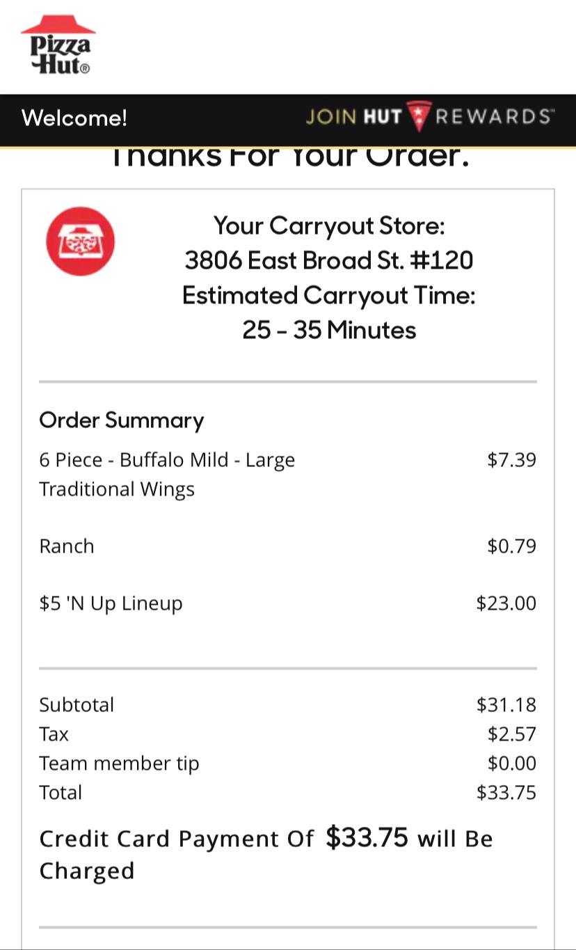 Read moreYesterday on May19 , 2019 I ordered from this store and I was concerned about the negnegative reviews that were being posted the manager name was Zenith and I'd like to think her for explaining the reason for some ( NOT ALL ) the negative reviews Pizza Hut has lost its touch over the last few years and the price had studyly gone up I spent $ 53.00 and hated myself the rest of the day,It's gonna be a long time before I revisit this store but one day I will just to see he she had made the changes she needs to make she's been with the company 16years but at this store only a short time so I feel she needs time to make somem changes, We talked about customer service and how it needs to be better but at the moment I'm staying far away from this store because my experience was just that bad $ 53.00 might not be a lot to you but I regret not buying a frozen pizza yesterday to make it even worse the guy repeated my order back to me and still got it wrong upon delivery, like I said I'm staying away or calling Domino's Pizza or Pappa John's the manager can call me if she has ant concerns about my post Billy Watts is my name and the pizza was order on...