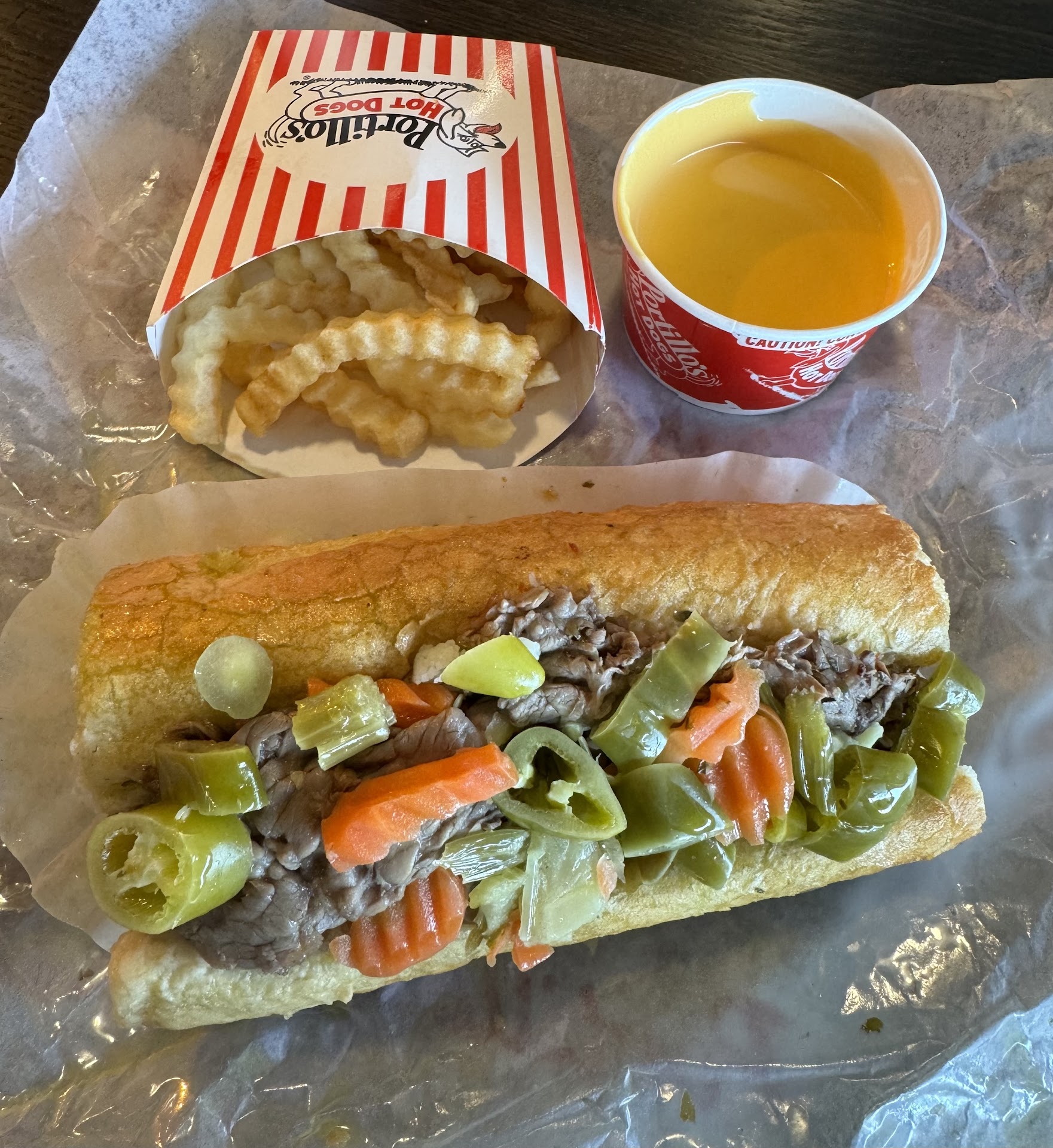 Read moreLike all Portillo’s, this one is fantastic. It’s hard to find real Chicago style Italian beef and hotdogs here in Texas, but thankfully, Portillo’s is opening a bunch of restaurants in the state. I grew up in Chicago so I can appreciate good Chicago style dogs With real sport peppers and celery salt, which most hotdog places do not put on their hotdogs. I typically get a hotdog, an Italian beef sandwich, and fries. And when you get the Italian beef ask for it dipped, which means they dip it into the gravy and it comes out really delicious and messy. Be sure you get both sweet and hot peppers. The chocolate cake is fantastic if you have room for it, and so is the sausage. This trip, I decided to try the whitefish sandwich after hearing people talk about how good it was. In Chicago, there are a few places that get whitefish direct from Lake superior and make incredibly good sandwiches from it. That’s what I was expecting, and this may be the only letdown I’ve had at Portillo’s. The white fish sandwich here is nothing to write home about, and I would not order it again. It was worth a try, But I will go right back to my staples on the next trip. I can’t wait until they open...