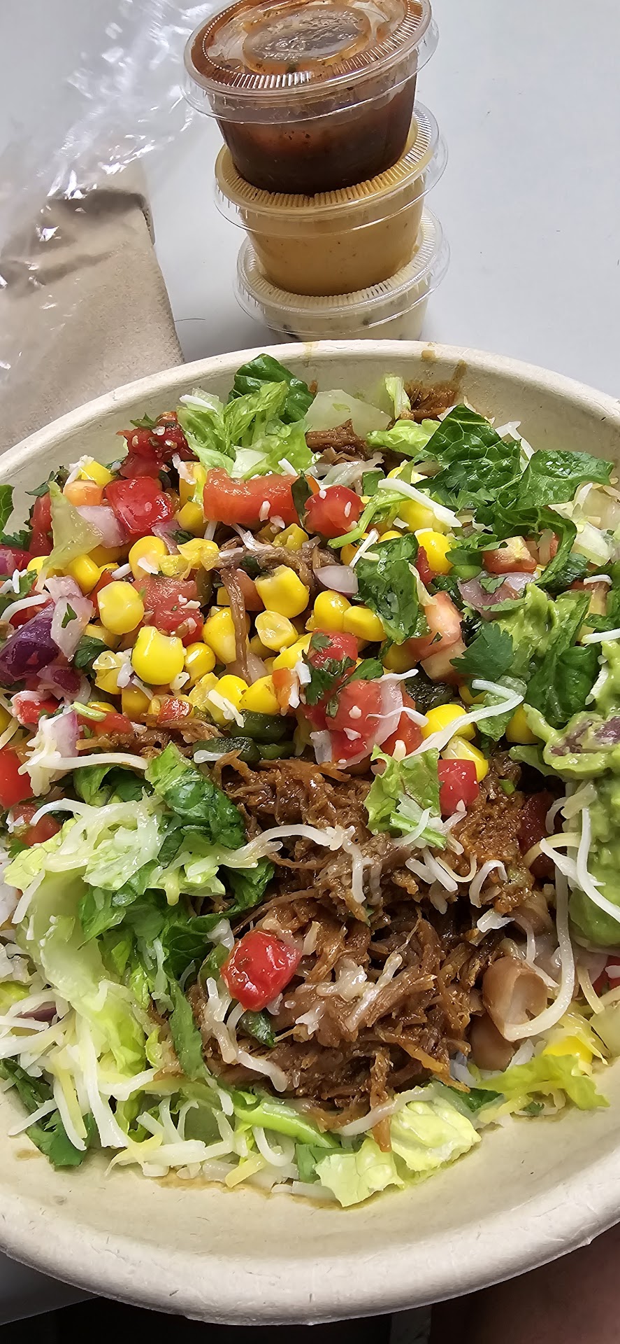 Dining area: makes me feel like I'm sitting at Subway. Very bland setup. No music like Chipotle. No "Latin" atmosphere.