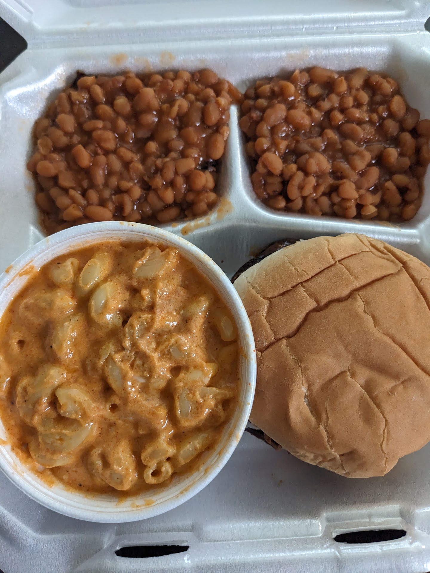 The brisket sandwich though was the best by far. I ordered it with the traditional sauce. My only wish is there was a sauce option with more heat to it. That would be better with the sweet and smokey baked beans.