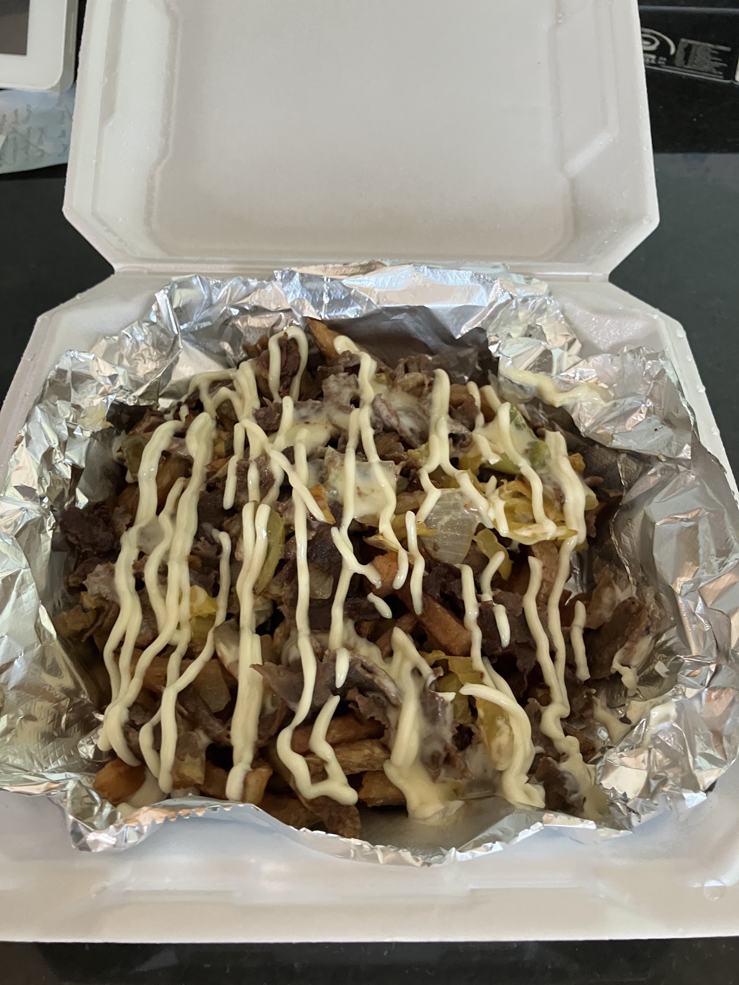 I decided to stop in and make my order rather than ordering online. This was my first time here, and I wanted to check the place out. When I walked in, I was greeted by Ferris, who was very friendly and helpful with my order. Itās convenient if you would like to have a beer or a drink while you waited. There is a small ā stand upā bar that one could hang out at while waiting for the food. While I waited, I had several conversations with patrons. Everyone was friendly. I ordered the Philly steak with everything, but without a bun. They will put the sandwich toppings on top of french fries if you request. The meat and the toppings were very flavorful! The french fries Were like fare fries. However, these were cooked a little more crispy than what you would get at the fair. (thatās a good thing.) I hope to get back there soon to try their chicken dishes, and the whole wings! I am also curious about their...