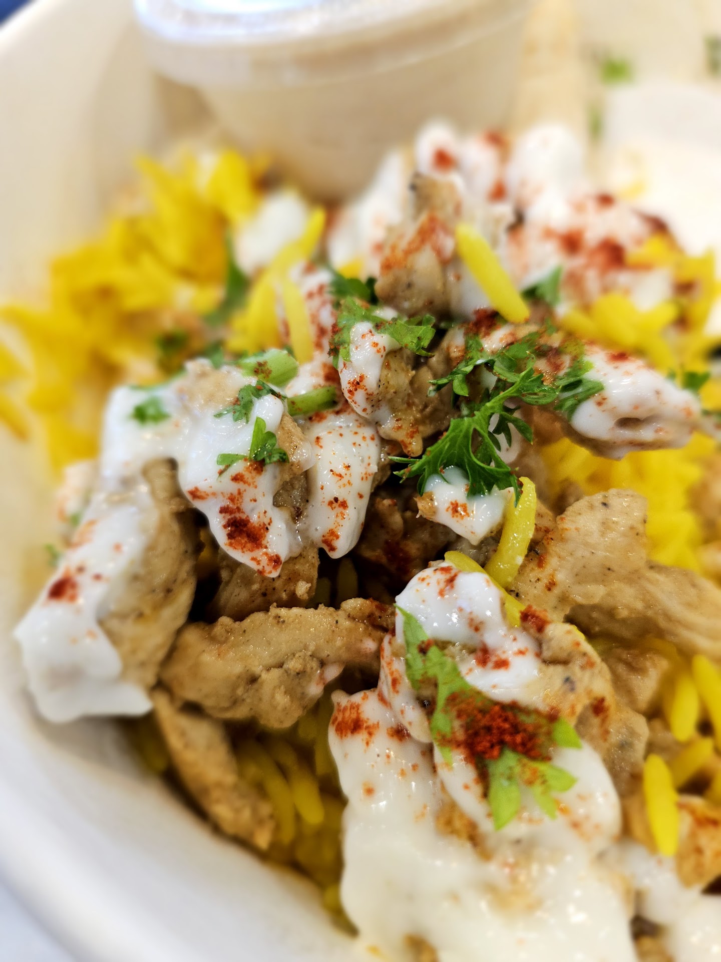 Food: Gyro Plate (7/10): The plate came with gyro meat, rice, a lettuce/salad mix, pita bread, tzatziki sauce, and a small side of hummus. The gyro meat was decent but didn’t quite live up to the NYC halal cart comparison. The rice was on the bland side—I think a bit more seasoning or a touch of saffron would’ve helped. The red sauce lacked spice, and the white sauce didn’t quite hit the mark for me either. Solid, but not crave-worthy.