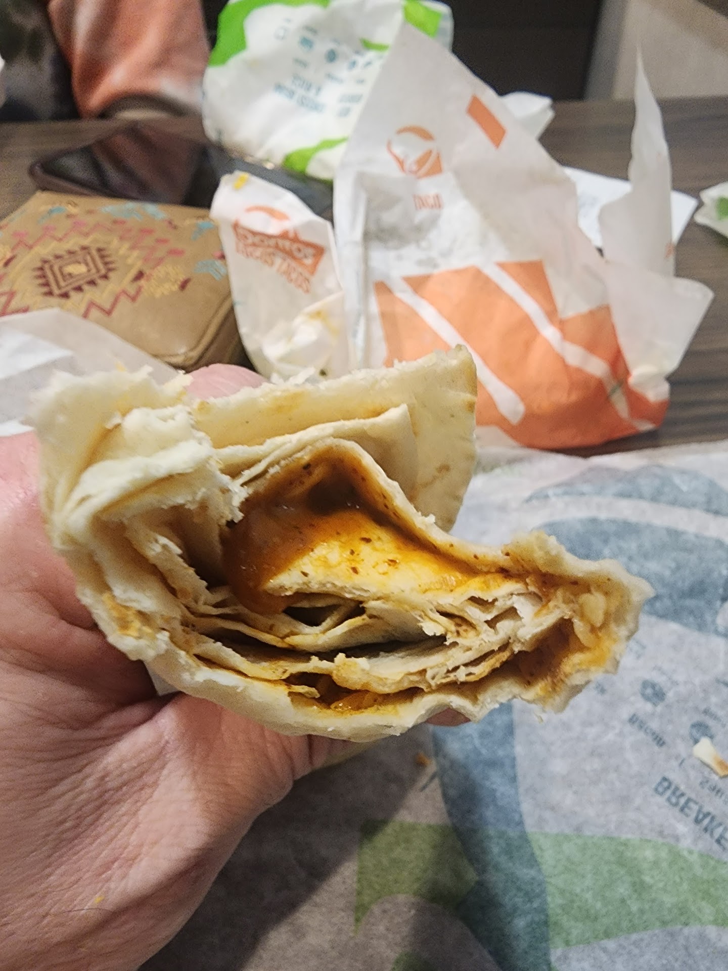 Read moreMy kids love taco bell. We don't visit here often because it's a bit pricey for me but I decided I would treat my son one evening. We went through the drive through and ordered a doritos locos taco, 2 grilled stuffed burritos, and a bean and rice burrito with a large diet pepsi. We finished orderijg and pulled to the window. Once at the window the young man gave me our drink that way half full then closed the window. I waited until he opened the window again, apologized and told him I hated to be that person but If he could fill my drink up all the way to the top I wasn't going to pay for a drink that was half full. He was hesitant at first, insisting that it wasn't his fault but the fault of the soda machine itself but took our beverage and started to fill it allowing it to overflow. He topped it as it was overflowing the top now and handed it to me out thr window dripping wet which was uncalled for. I just wanted what I was paying for which was a full drink. Not to be doused in soda and have an attitude, I could see what was a manager come up behind him and hand him our bag of food which h3 quickly rushed out the window right behind our drink and they closed the window as he seemed frustrated. We drove to a spot where we could eat and my son's taco had hardly any filling in it. It was mostly SHELL no lettuce or tomato. I was HIGHLY UPSET. Our burritos were both rushly made and sloppy. When I tried to contact the restaurant the same day after leaving the phone was "busy" I called several times with no avail. I even contacted corporate as well and no contact. I am disabled, it's hard to go back and forth so this wasn't worth the effort. But it was highly disappointing to see how bad the food service has become, I have been a restaurant manager for 15+ years and I was highly disappointed in the service and product...