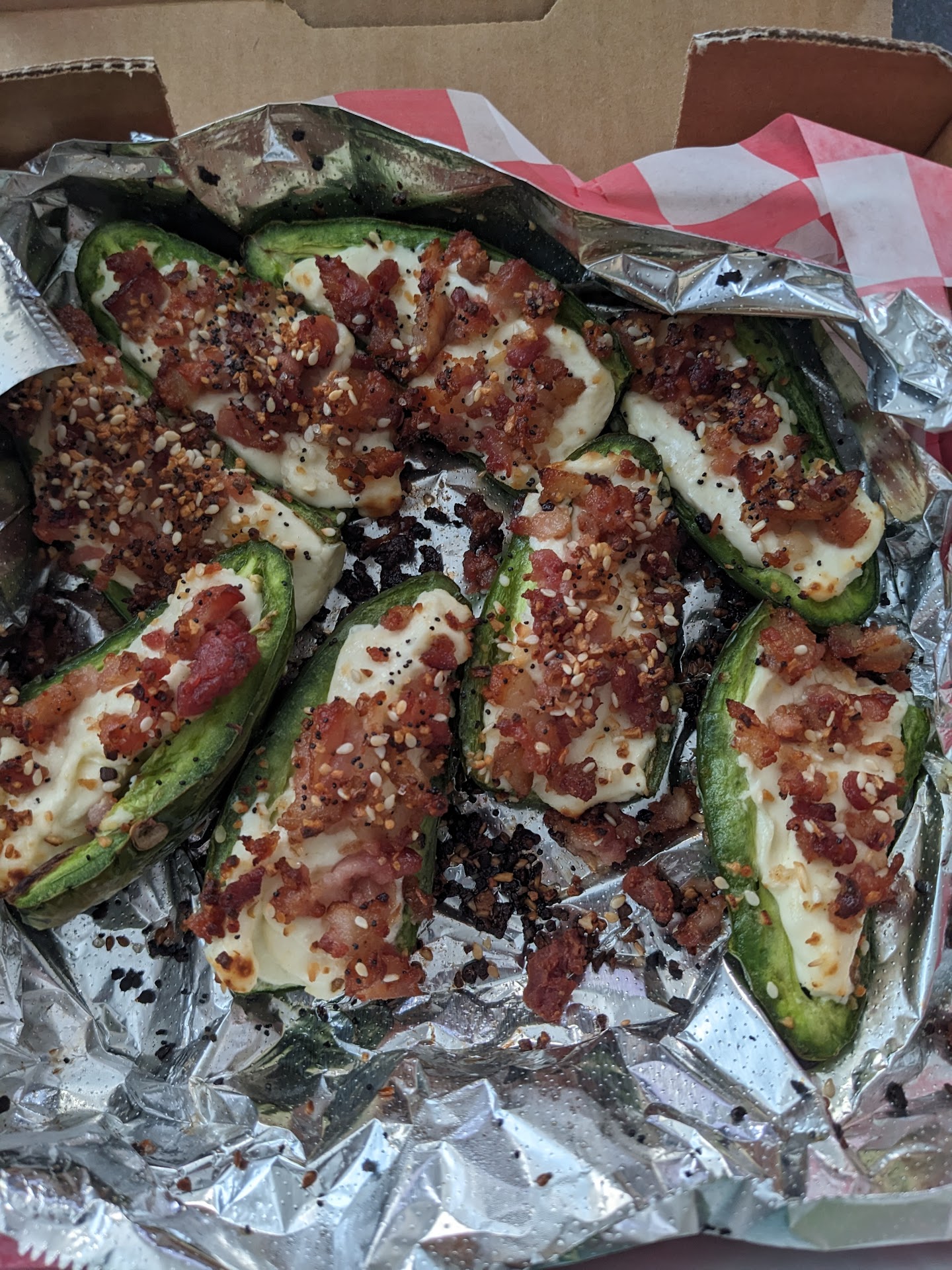 The jalapeno poppers were the weak point in the meal, and they often are when ordered at a pizza joint. I put some hot honey sauce on them and that perked them up a bit. They aren't bad, but they aren't anything that's gonna bring you back. The portion size for them is great though. You get eight of them for a little over $8. That's really good value.