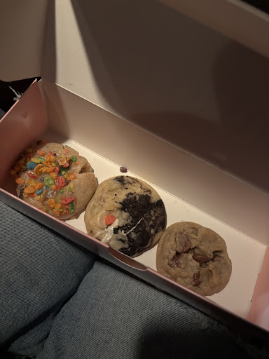 Read moreI would rate this place a solid 6-7 out of 10. The cookies were very delicious, and I especially loved that they were warm when I got them! The staff was fast and very nice when we asked questions, which made the experience even better. The place was very clean and had a cute pink interior that added a nice touch. Not bad on the price either — 3 mini cookies for $10. Overall, a tasty treat...