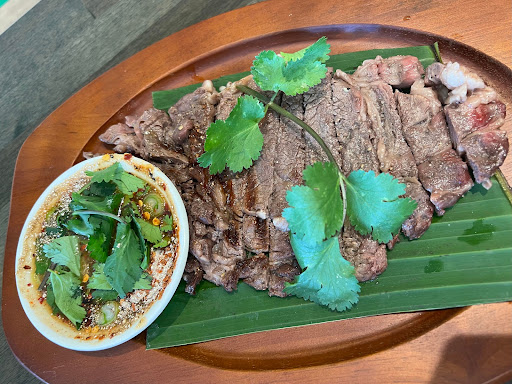 ORDERS: Pineapple fried rice was great and good presentation. Butterfly Fish is the must I love a crispy fish and a thai style dressing with mango on the top. Crying Tiger Classic staple in Thai cuisine, which was executed well! Loved the spiciness of the dry chili sauce and the savory texture from sauce. The beef was juicy but not too dry meat. Very filling and soft to chew. Three kind of mushroom salad. They served as a warn dish texture was great and tasty. Poh tak Seafood. The broth was so good and feel thai tasty spicy soup.