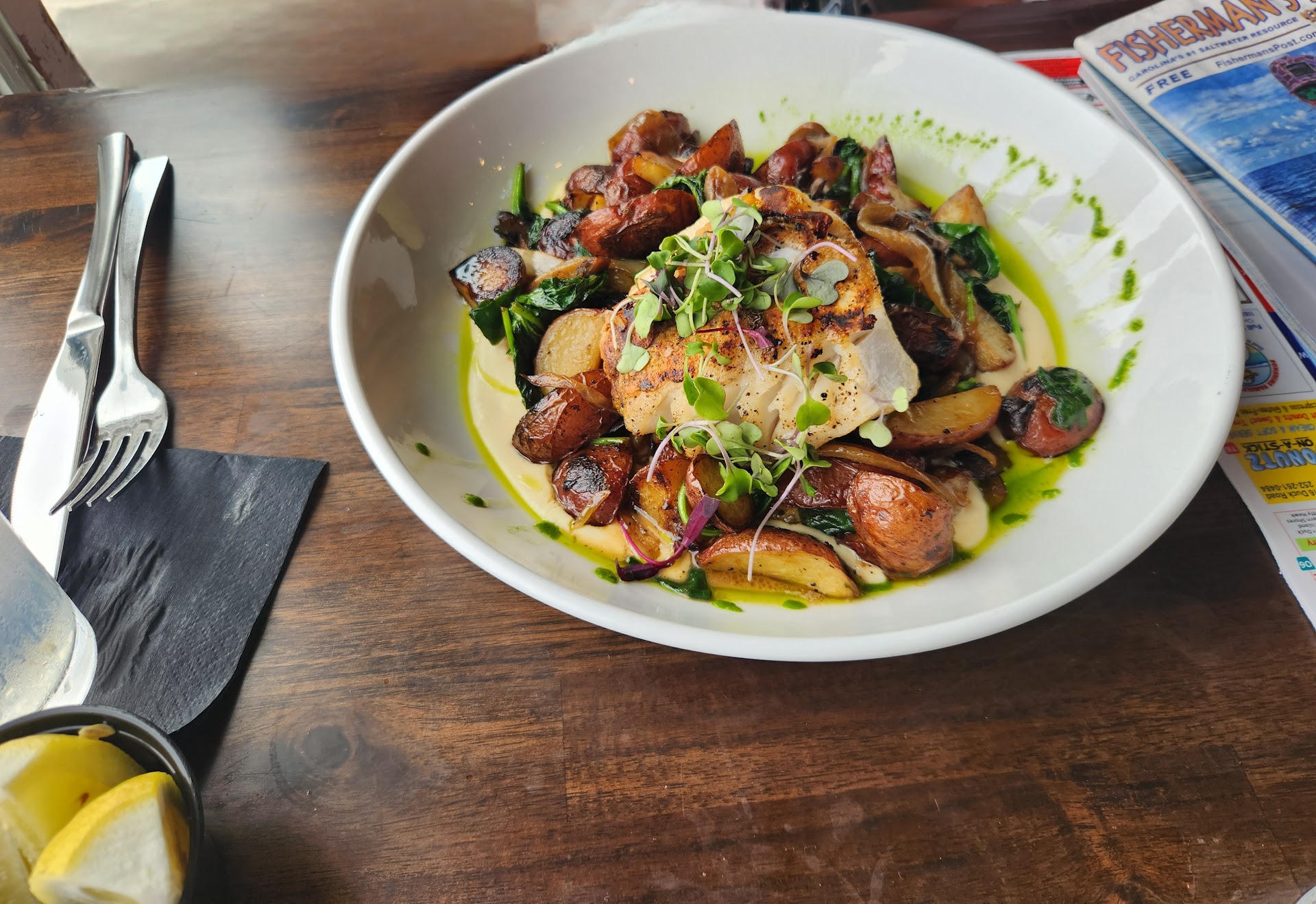 Read moreWe were in the area to see the Christmas lights at the Elizabetathion gardens in Manteo and was planning on stopping around there for dinner. Happen to notice all the yatchs docked at the foot of the bridge and this restaurant. Since we never been there before we decided to stop there for dinner and I'm so glad we did. Restaurant is on the second floor,, but they do have a elevator if needed. The views were awesome and they have a really large bar area with several tv's for those that are there for drinks or socializing. Food and service was great. Had the the 5 onion soup as a appetizer, best I ever had and for my entree the fish and chips. Fish was not overly done and portion was large. 4 pieces of fish, fries and slaw. Don't mind saying I'm a pretty big eater and I did not have dessert, no room to put it. Wife had the fish of the day which was tuna, grilled on tacos. I tried a bite of hers and it was amazing. Our aunt had the fried shrimp dinner, 12 pieces of fairly large shrimp. She could only eat 8, I had the other 4, hence no dessert. However the shrimp was fried just right and was was not overly breaded. The other couple with us also had the fish and chips, they also said the best they ever had. Our waitress was kind, answered all our questions and her service was on it! We come to this general area ( Corolla) often during the summer months to drive out onto the beach and enjoy the water and sun. Rest assured that we will be adding this restaurant to our dinner plans...