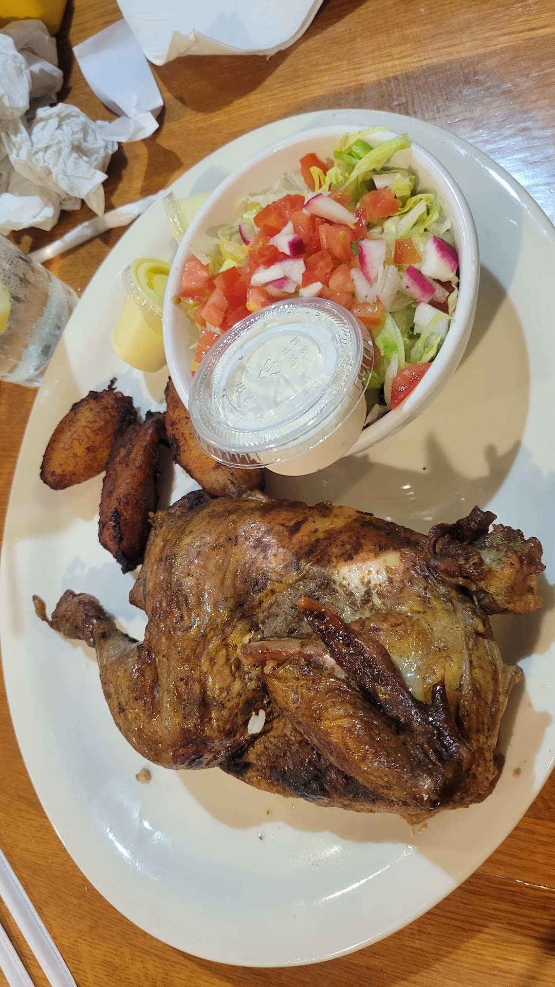 We had heard there was a Peruvian restaurant nearby and jumped at the chance to go. It is a store front building with plenty of parking out front. We were a group of seven and were welcomed and accommodated with tables put together for our party. The waitress was friendly but it is rare I find a waitress with no writing pad that gets our order right. This was no exception. After taking our drink orders, it was quite a wait for our dinner orders to be taken. The chips helped get us through. When our meals came, it was another server who brought them, and he had the wrong orders. We had ordered beef fajitas and were brought chicken, the sides were wrong with the orders. They came back making a longer wait for our meals and us eating at different times. I am thinking because of the tourist flare of the area the portions are small in comparison with the price. $14 for the half chicken and the sides are served in mini sauce bowls. Four slices of plantain or ten fries. A little ridiculous. The chicken taste more smoked than freshly charcoal with a crispy skin and charcoal flavor. All in all the food tasted good, but after eating at Peruvian restaurants on the mainland with price to portion and quality, this one is okay. I would suggest they focus on a few dishes, making them great than such a vast selection...