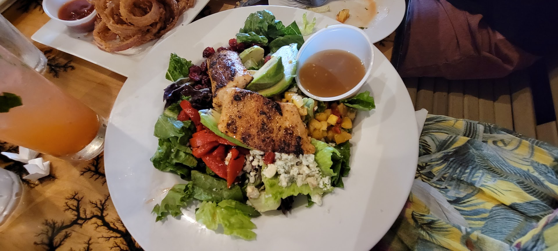 Read moreWe were in town for a concert at Roanoke Island Festival Amphitheater. We stopped here to eat before our concert. Love the outside seating at the front of the building. What a cool vibe. We ate inside, which had a fun, funky vibe as well. Our first encounter with our server was a bit off putting. He introduced himself, we hesitated for a moment on our drink orders and he seemed distracted. Then said he would be back in a minute without taking our order. We started to second guess our decision to eat here. But the rest of the evening things went great. All our drinks were very tasty. The food was delicious. We all ordered different dishes and tried bites of them all. Very impressed with all the dishes we had. The stuffed mushroom app and onion rings were amazing. So glad I ordered the onion rings as a side with my salad. Definitely a must try. The server made great suggestions throughout the meal. At the end of our meal my husband decided we should take a shot before we left. Our server recommended a tequila shot with a house made chaser. I don't love the taste of liquor so I didn't love it, but it was a huge hit with the rest of the group. Highly recommend this restaurant if your are in the area. The atmosphere is a great representation of the local area and serves amazing, fun and unusual dishes utilizing fresh catch/local fare. Mid level price and fun and...