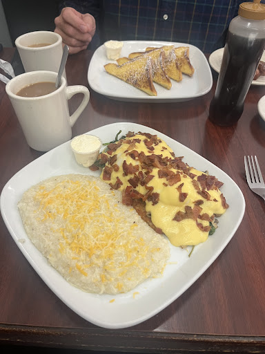 Read moreAfter many friend recommendations I finally made it in to visit Fireside. So incredibly glad we did and it will not be our last! The atmosphere is cozy and warm with a fireplace going and seating comfortably spaced. The menu is creative and filled with many mouth watering options. We ordered French toast and a side of their thick and juicy sausage, and a featured special called “Freddy’s Benedict”. It included hashbrowns, covered with mushrooms and spinach, that were topped with hollandaise, two perfectly poached eggs and chopped bacon. Served with a perfect side portion of cheesy grits. Everything was fresh, tasted delicious, and seasoned exactly how it should be. Service certainly did not fall short and it was obvious this is a family owned establishment as many customers interested with each other as such and those that did not staff certainly made feel like family with their warm smiles, endless attention and sincerity. We were visiting for breakfast, but could not help but notice their attractive dessert case . it was very apparent that the delectable choices were all homemade. Our friendly waiter did share with us that everything is made in house by his uncle. we will certainly be back to enjoy lunch and a dessert at...
