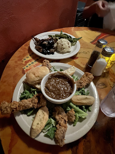 Read moreBy far the best restaurant in Terlingua. This is a must for anyone going to Big Bend. We ordered the Chicken Fried Antelope and the Tequila Marinated Texas Quail. The Antelope was so soft on the inside, crunchy on the outside, and tasted delicious. The gravy it goes with added a ton of flavor. The Quail was also delicious. My husband preferred the Antelope over the Quail but it was still really good. They just had very different flavor profiles since the Quail had a yummy blueberry balsamic reduction. It came with green beans and mashed potatoes. They tasted so fresh and were flavored perfectly. Never had such good green beans before. We finished our dinner with the Homemade Chocolate Bourbon Pecan Pie and Root Beer Float. I usually hate pecan pie due to the overwhelming sweetness, but it was incredible. The chocolate bourbon flavor sold it for me. While I didn’t add ice cream to my pie due to lactose intolerance, I did sneak a taste from my husband’s root beer float. It was a very unique tasting ice cream. Never had an ice cream like that before and next time I’m down here, I’m definitely having just a bowl of ice cream. Our waitress was so kind and she was there when we needed her, and gave us our space during our meal. The entertainment was good. We usually don’t like live entertainment due to the high volume, but they only sang a few songs and gave us a break. Great atmosphere. This restaurant is a must if you...
