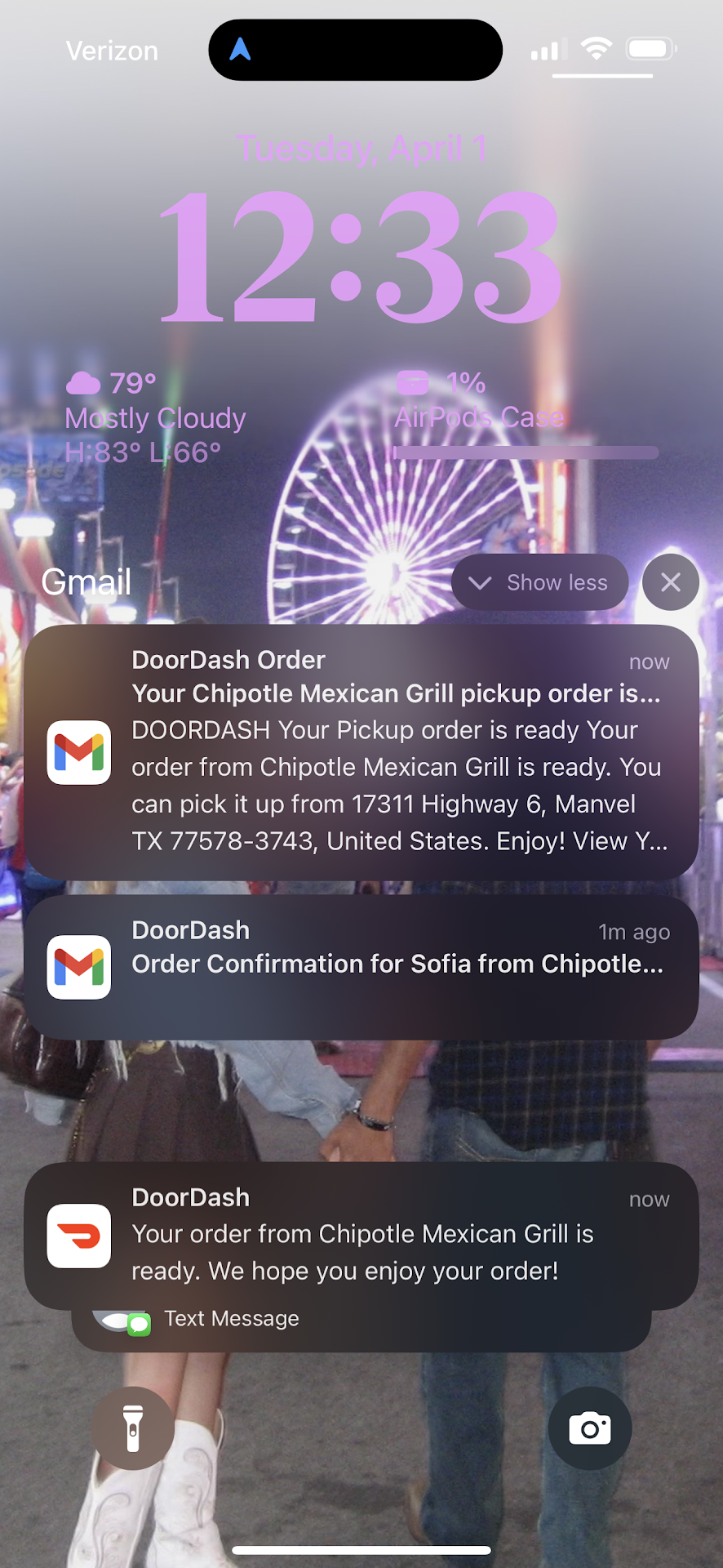 i included a picture of my doordash notifications for evidence and my victory royale...