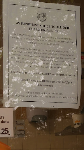 (I have also included a picture of their changed operating hours due to COVID-19, which was right inside the drive...
