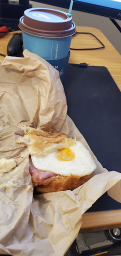I’m just so confused! Caribou used to have so many options for vegetarians, impossible sandwiches, egg bites, etc. They now have one egg bite option and it’s bacon. Egg bites, are not a sandwich. May seem obvious but I’ll wrap around later. I asked if they still had other options and the person working said “Yes we have spinach!” Well, by golly I’m in luck!! I said “Oh it’s just not on the menu?” and she said, “No, it’s right next to the bacon egg bites!” The spinach thing listed next to the egg bites is, unfortunately, a sandwich. I again explained I wanted egg bites but don’t eat bacon. I asked what happened to the other ones they used to have and she said they’ve been discontinued. I then asked if they had the Impossible sandwich anymore, as that’s what I used to get, and a different worker behind the counter popped in to tell me the egg/tomato flatbread they have is fully plant based. Amazing! But sadly still not the question I asked! I settled on the flatbread option since it’s literally the only non-meat breakfast option now. The person behind the counter that helped initially (pointed out the sandwich when I asked about an egg bite) actually stared at me the whole time I ate. I kept looking up to find my admirer not breaking eye contact. If you want my number just say that! The sandwich was sadly sloppy and oily, and tomato and pesto oils were dripping all down my arm. I had to go have a goblin-style rinse in the bathroom sink. Should maybe come on a plate with a fork instead of in a bag?