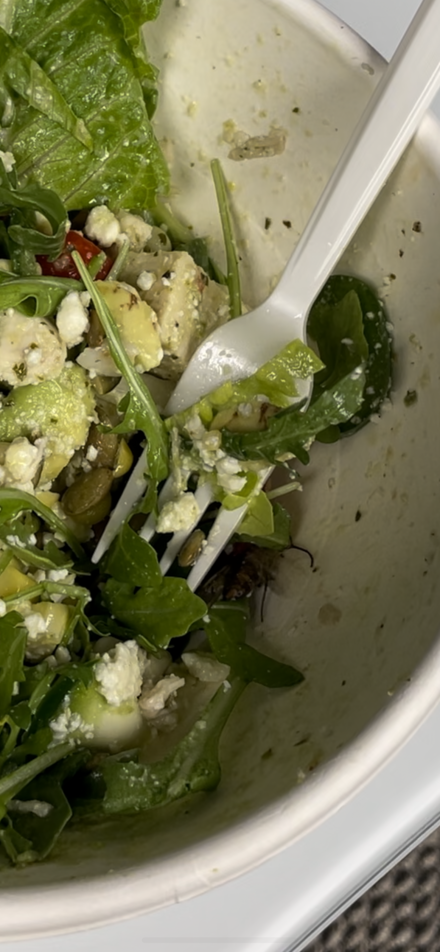 2.) Only one person was ahead of me in line, yet a prep cook completely ignored me while refilling bins. The cashier finally acknowledged me with a vague "I’ll be right with you." My salad was made in a to-go container, which felt wasteful since I intended to eat in.